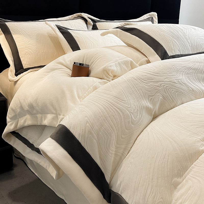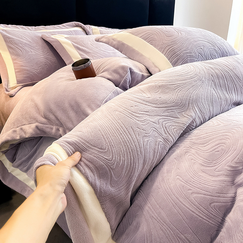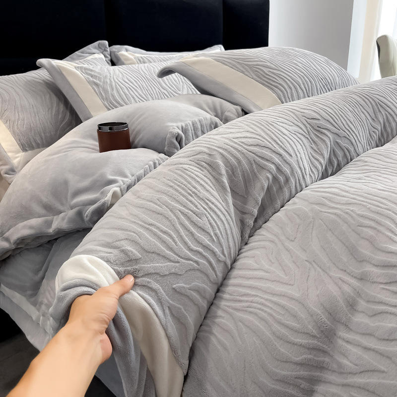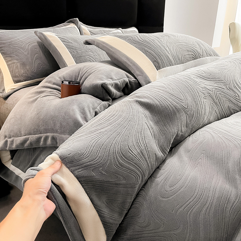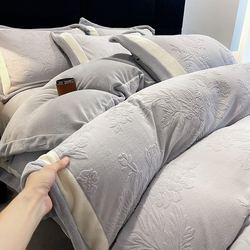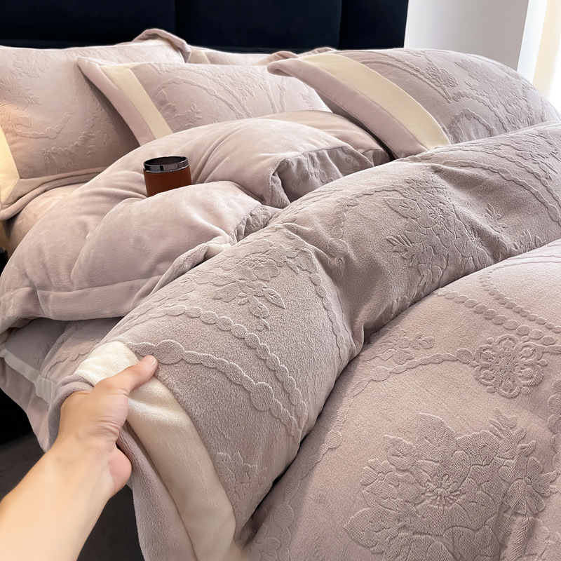 A 급 가을 겨울 우유 벨벳 4 종 세트 7D 조각 벨벳 따뜻한 퀼트 커버 겨울 두꺼운 양면 벨벳 침구