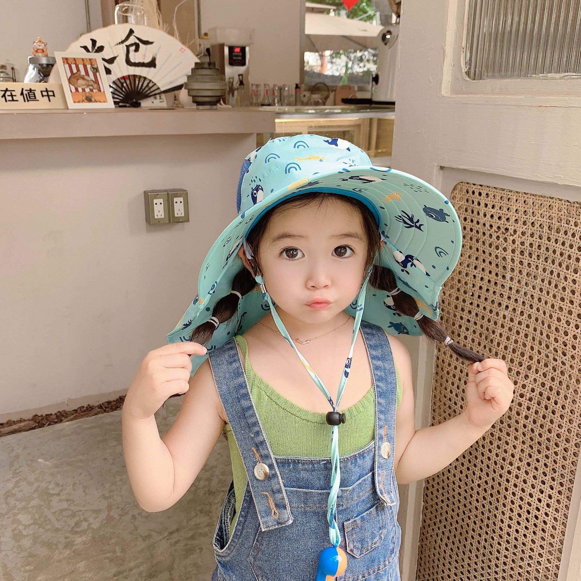 어린이 모자 여름 차양 모자 아기 선 스크린 모자 여성의 귀여운 만화 큰 브림 비치 어부 모자 남자의 통기성스토어 가기