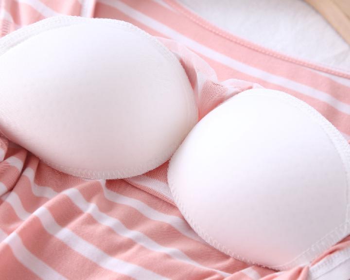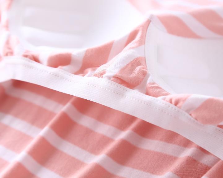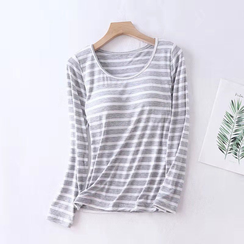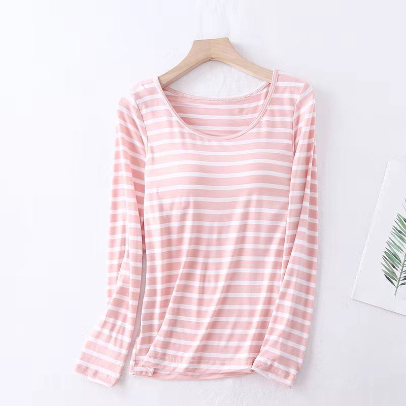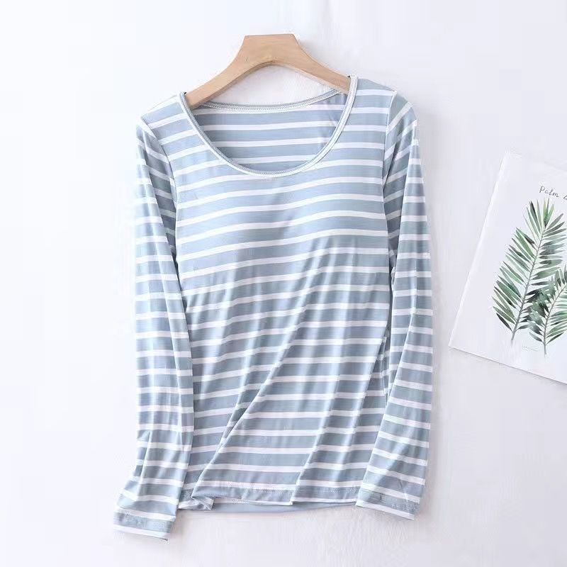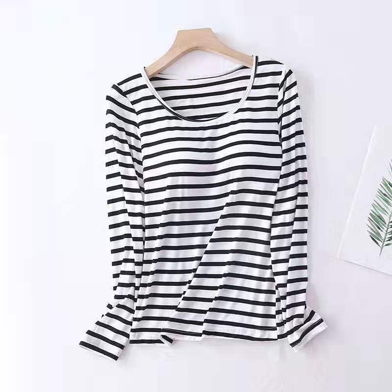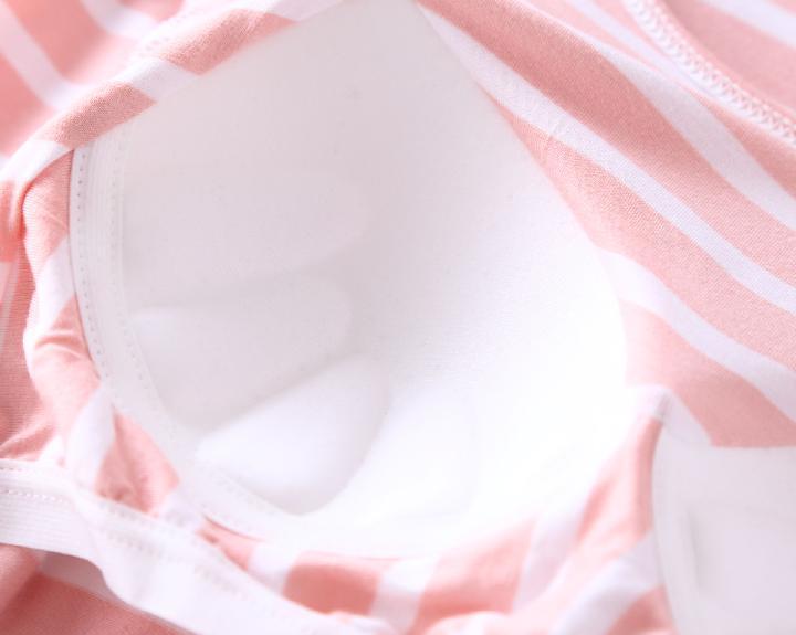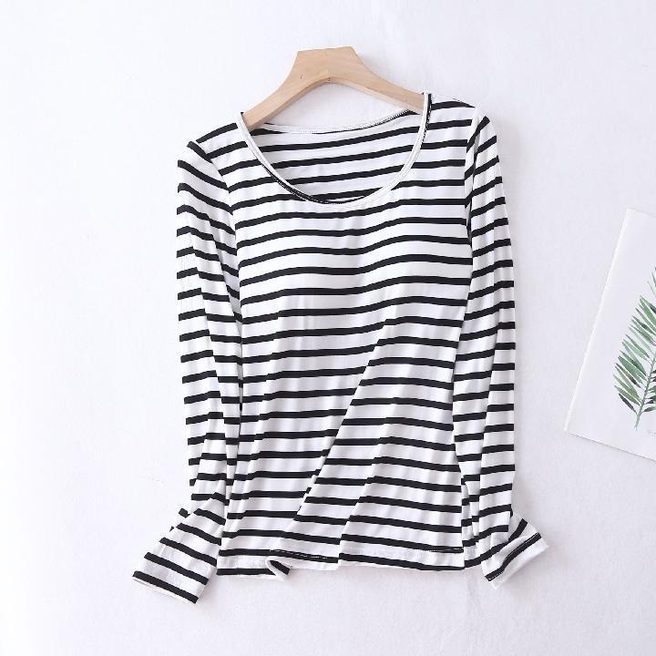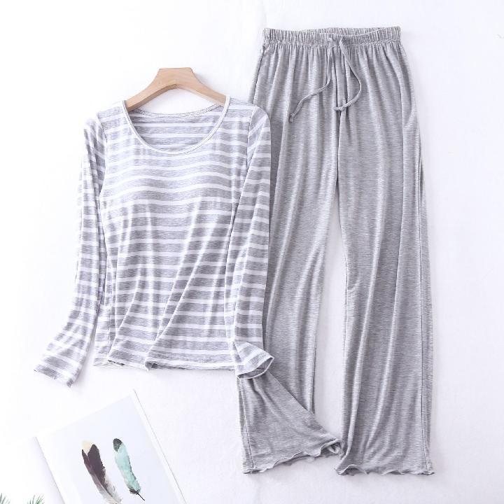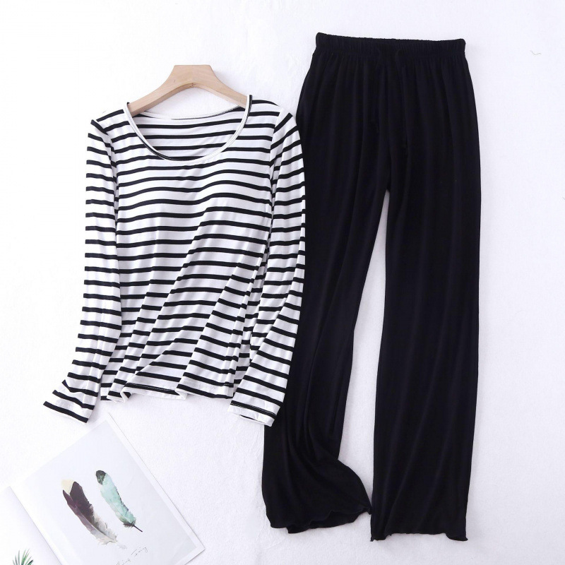 가슴 패드 5 손가락 컵 스트라이프 긴 소매 러플 바지 세트 컵 통합 홈 옷을 입은 모달스토어 가기