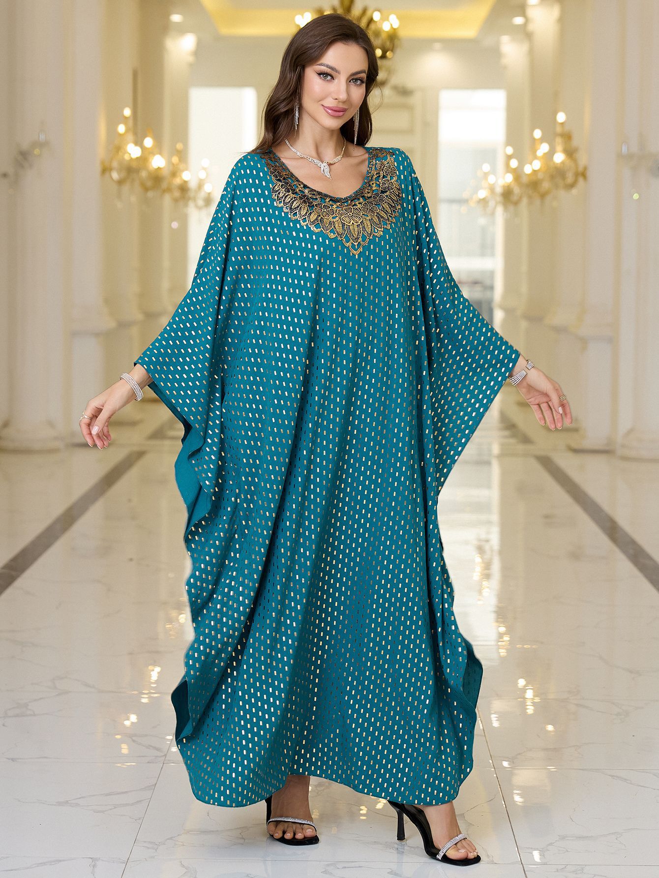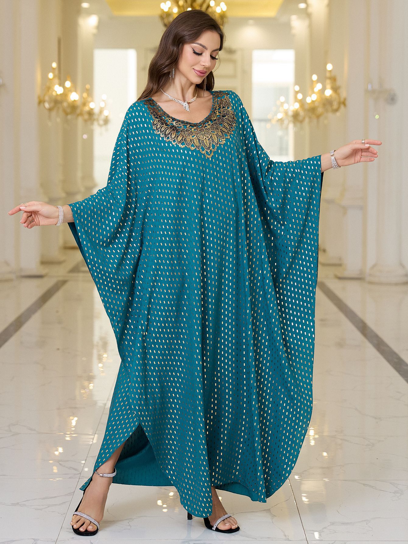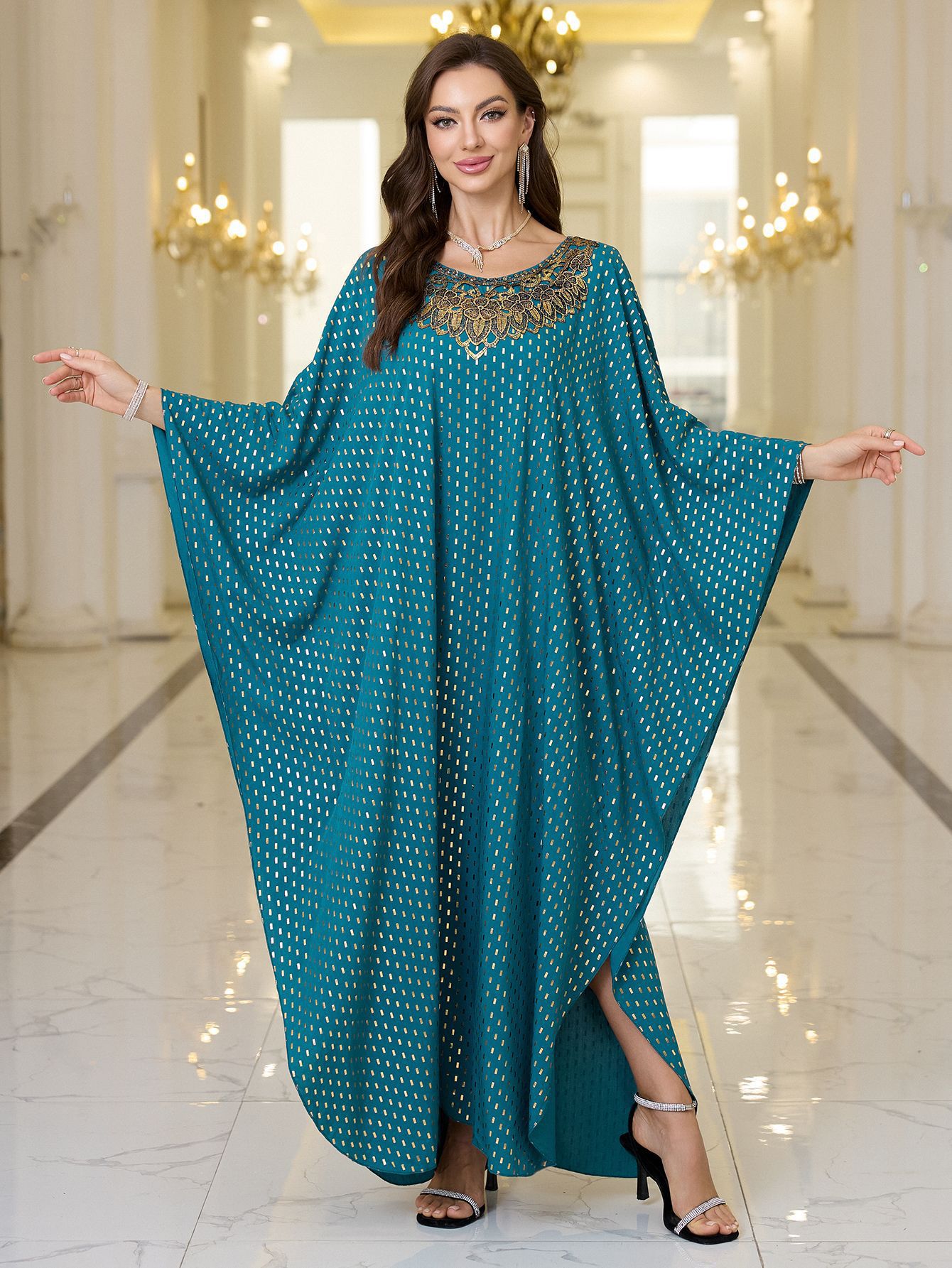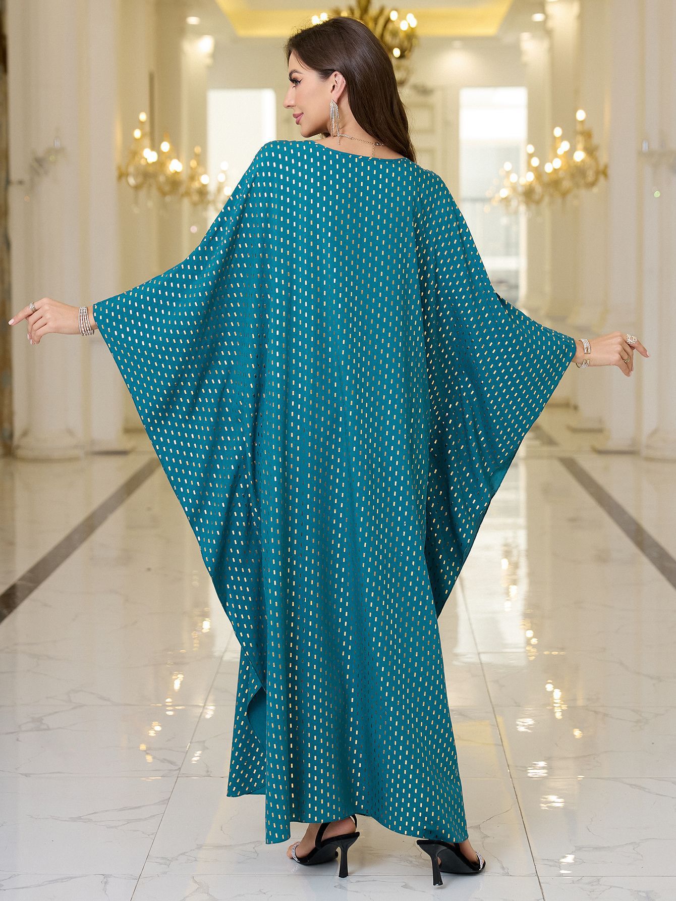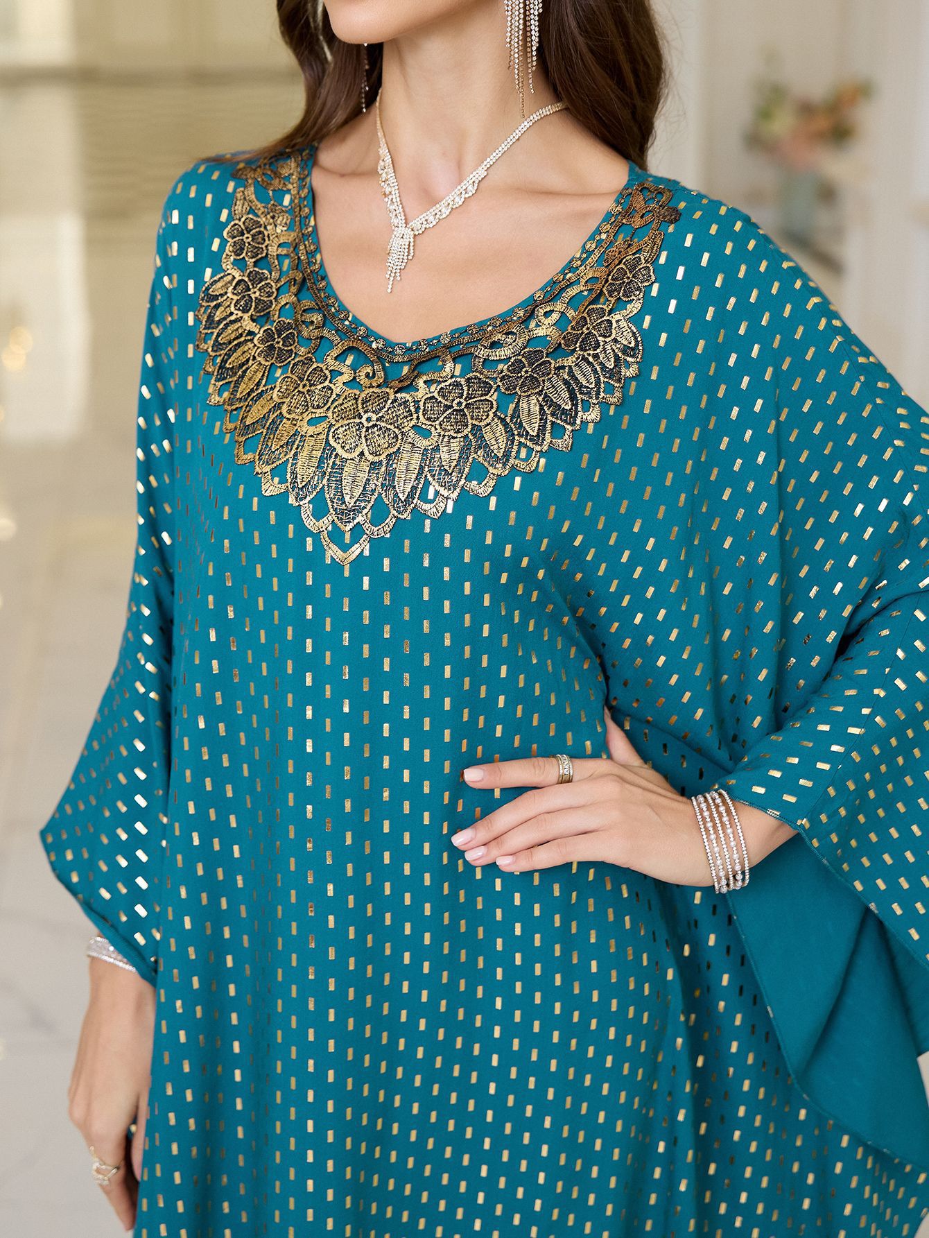 2025 새로운 유럽과 미국의 폴리 에스터 홀 블루 웨이브 도트 넥 브론징 비치 블라우스 느슨한 플러스 사이즈 비키니 외부 블라우스스토어 가기