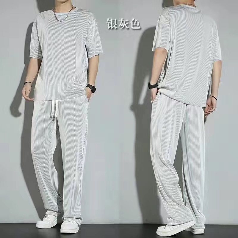 남자 바지 아이스 실크 스포츠 세트 여름 얇은 2025 새로운 패션 느슨한 복용량 남자의 통기성 캐주얼 바지
