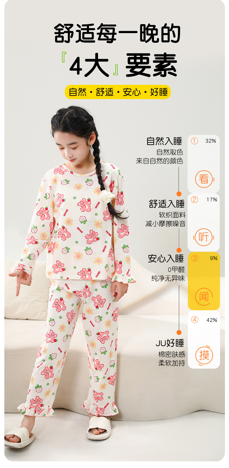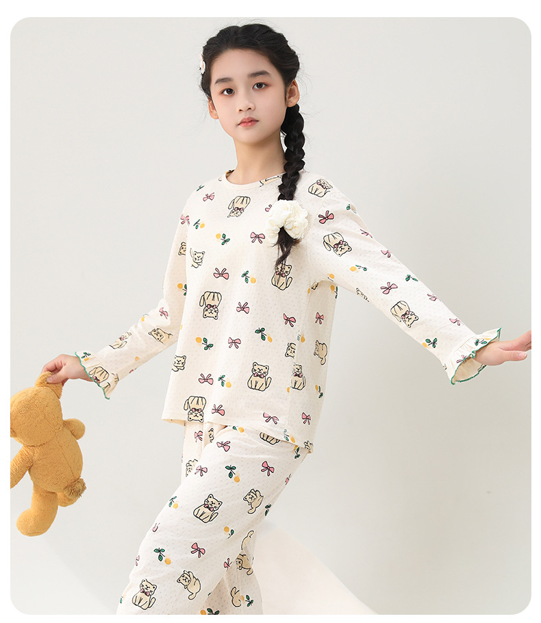여성용 보물 여름 순면 홈 의류 세트 어린이 귀여운 긴팔 에어컨 의류 파자마 풀오버 얇은 클래스 순수한 면화스토어 가기