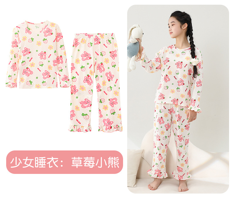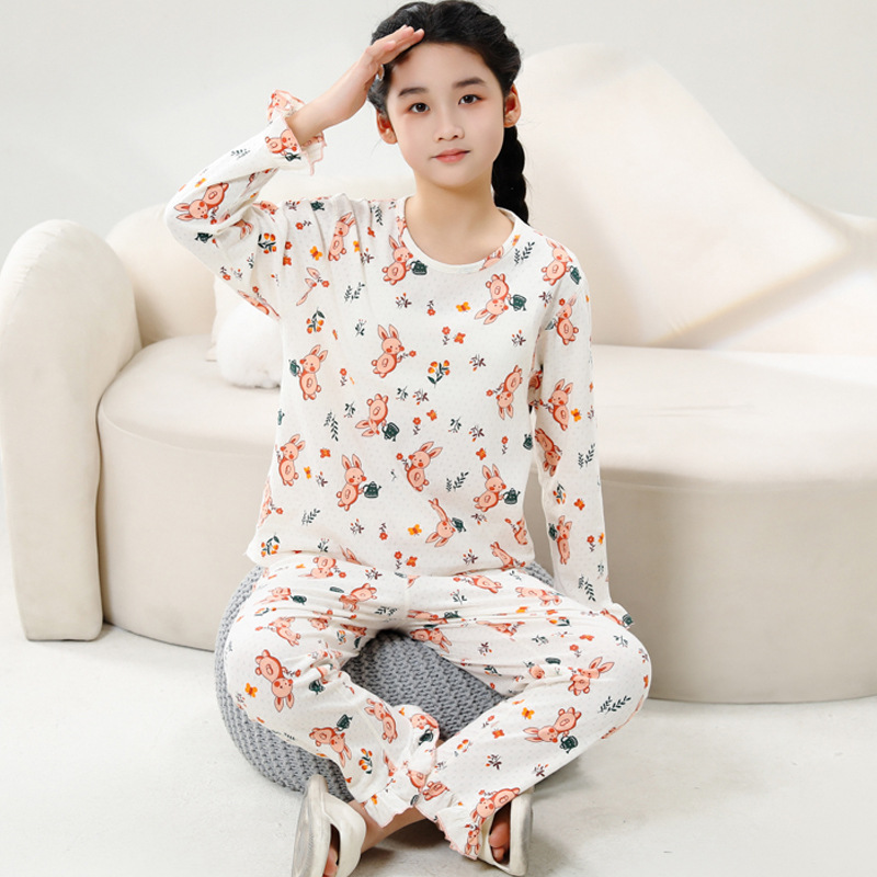 여성용 보물 여름 순면 홈 의류 세트 어린이 귀여운 긴팔 에어컨 의류 파자마 풀오버 얇은 클래스 순수한 면화
