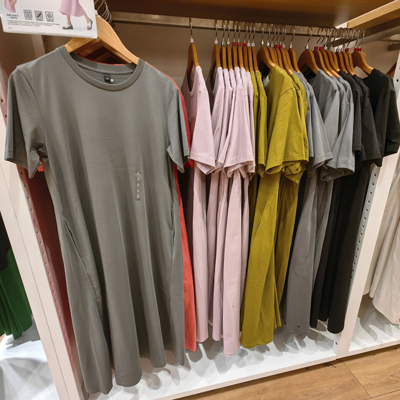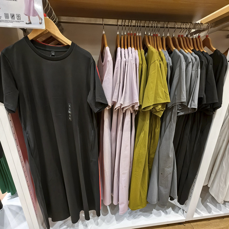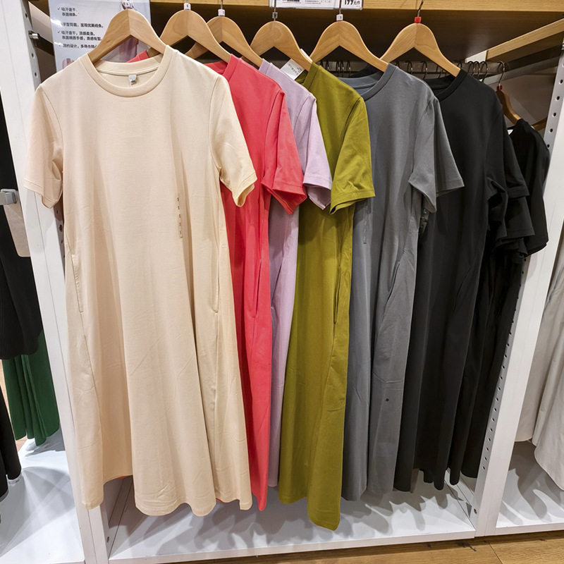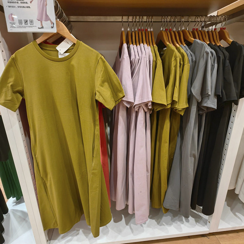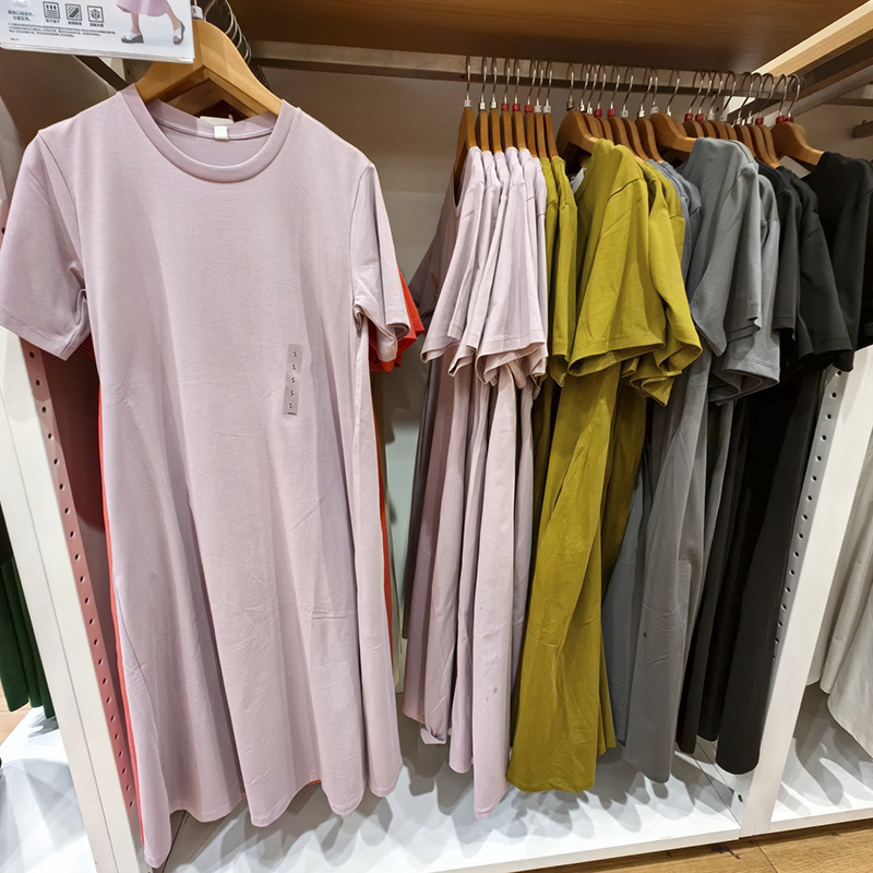 피팅 룸 코튼 블렌드 티셔츠 느슨한 긴 스커트 긴 A 형 스웨트 흡수 홈 반팔 원피스 여성 466554스토어 가기