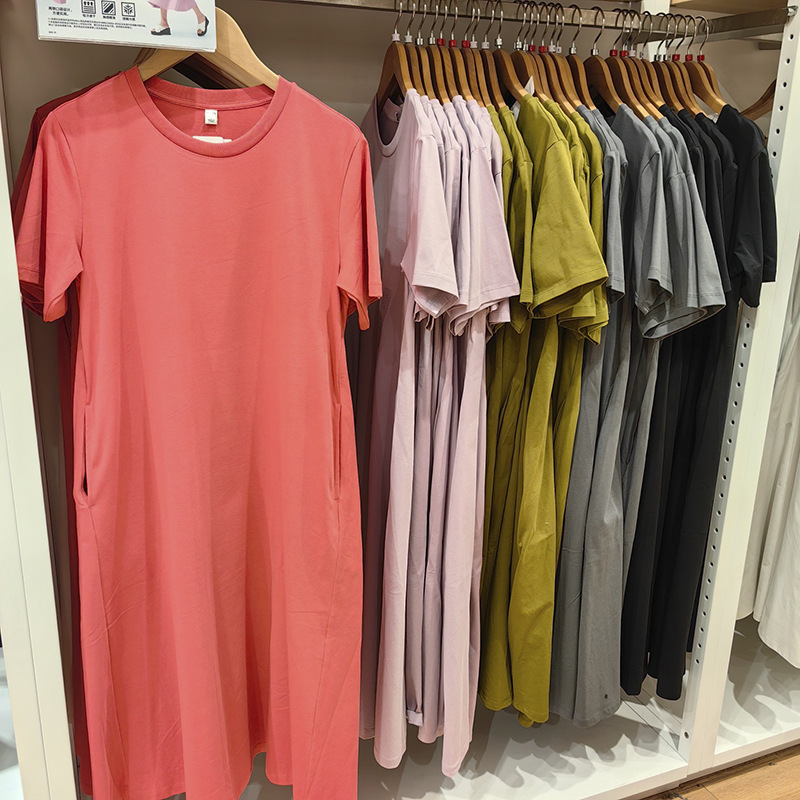 피팅 룸 코튼 블렌드 티셔츠 느슨한 긴 스커트 긴 A 형 스웨트 흡수 홈 반팔 원피스 여성 466554