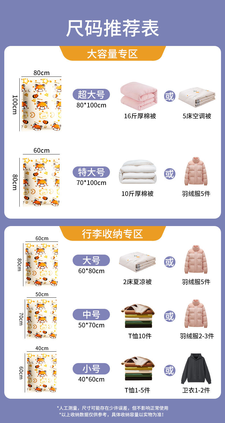 작은 너구리 진공 압축 가방 포장 가방 이동 저장 가방 면화 이불 옷 다운 재킷 진공 가방 도매스토어 가기