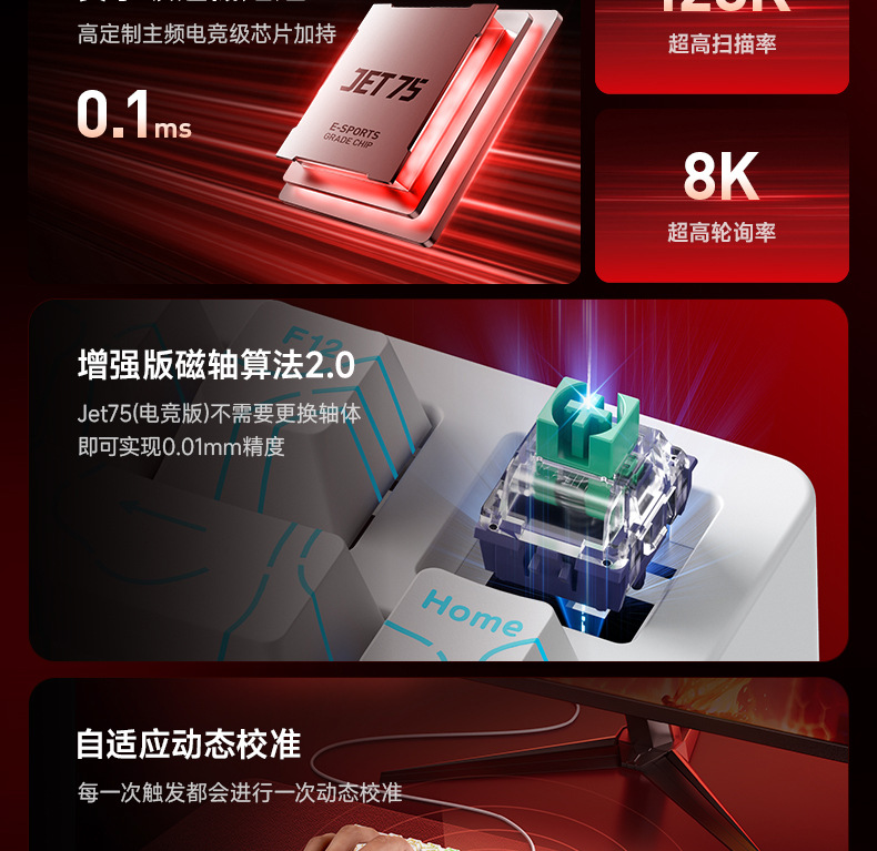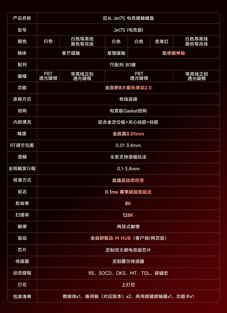 제트 75 자기 축 기계 키보드 전기 경쟁 게임 사무실에서 MCHOSE Mai 맞춤형 전용 케이블 낮은 대기 시간스토어 가기