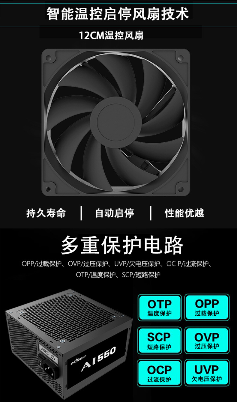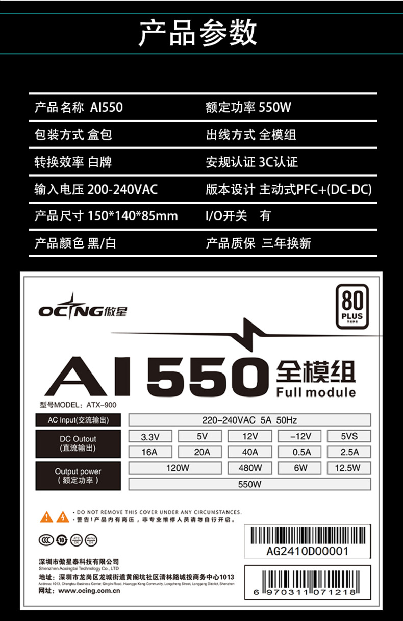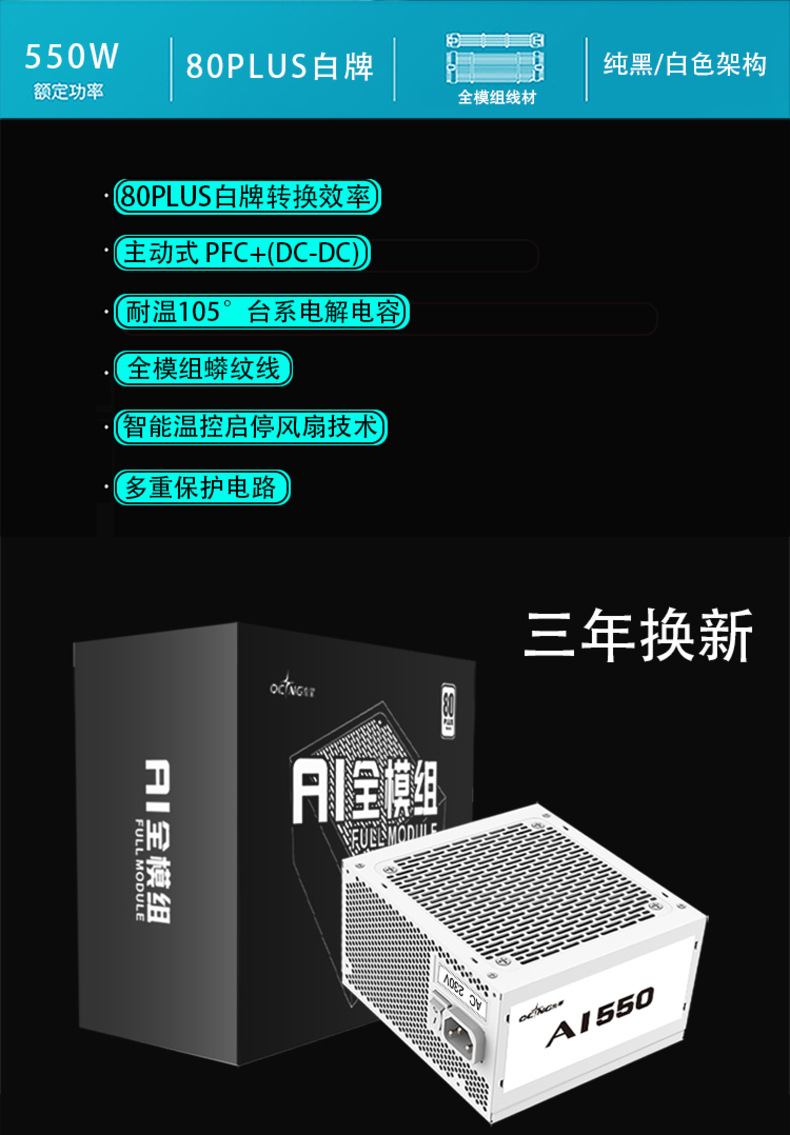 Aoxingtai AI550w 전원 공급 장치 전체 모듈 새로운 eSports 음소거 DC-DC 정격 데스크탑 전원 컴퓨터스토어 가기