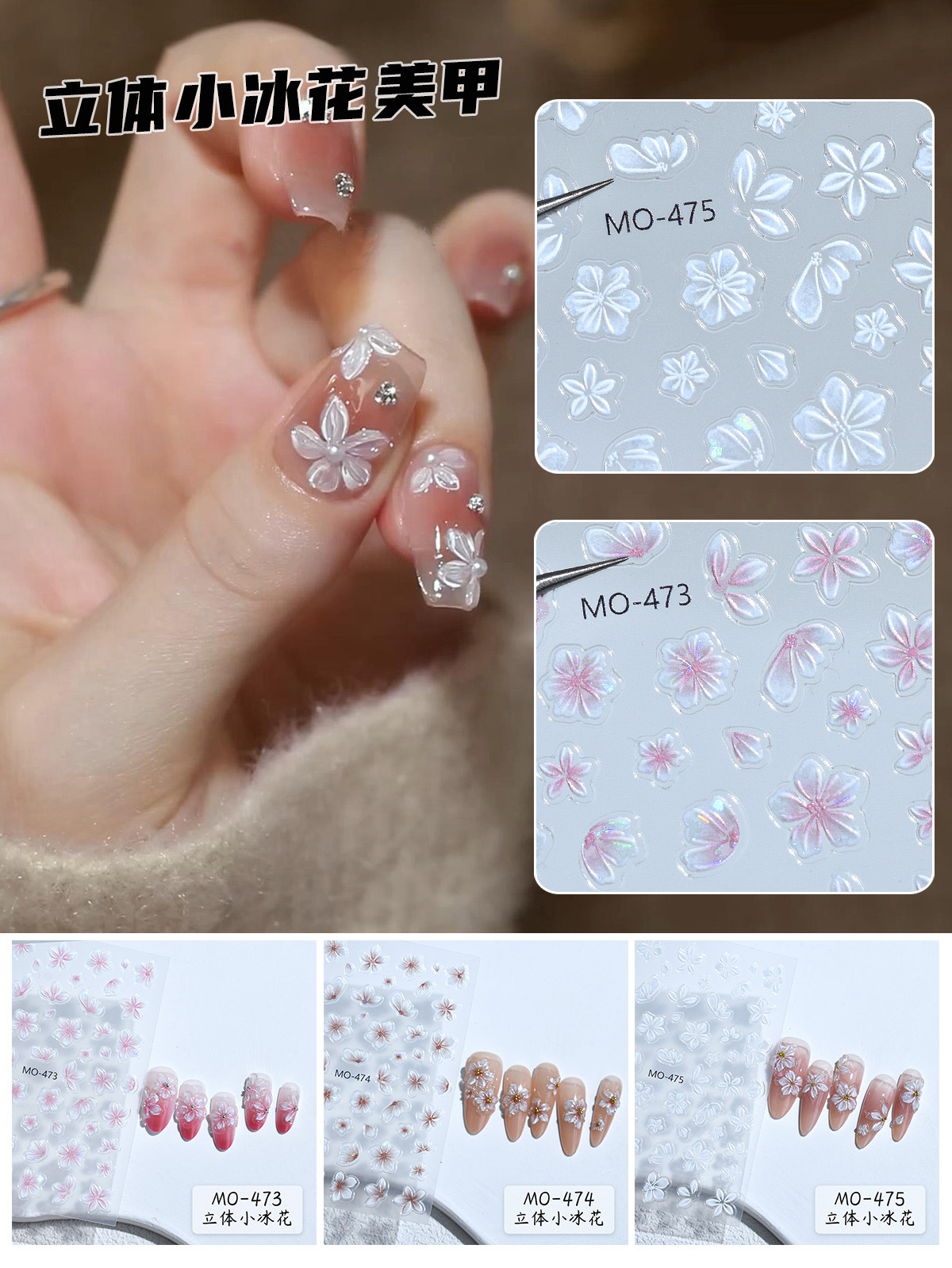 3 차원 작은 얼음 꽃 네일 릴리프 스티커 스타일 봄 명확하고 부드러운 달콤한 간단한 데칼 네일 액세서리
