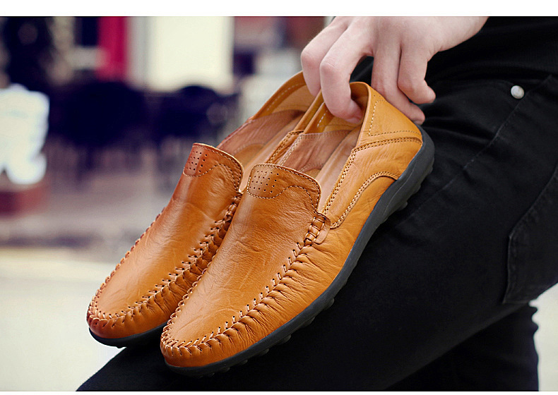 2025 새로운 남성 가죽 신발 캐주얼 소프트 하단 영국 비즈니스 Doudou 남성 신발 통기성 유행 게으른 운전 남성 신발스토어 가기
