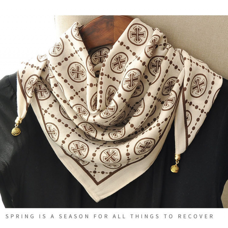 스퀘어 스카프 여성의 2024 새로운 자석 버클 목 보호 작은 스카프 여성의 가을 및 겨울 면화 린넨 목 스카프 보호스토어 가기