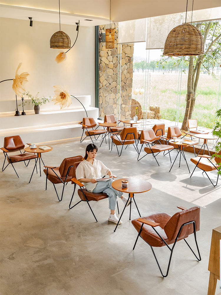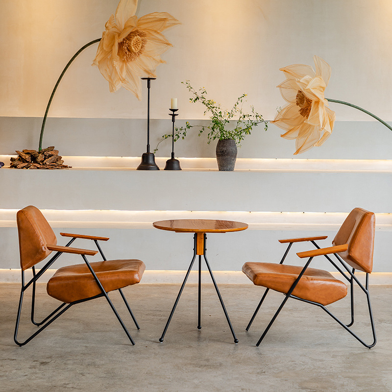 인터넷 우유 차 가게 테이블과 의자 조합 커피 숍 캐주얼 간단한 클리어 바 산업 스타일 아이언 빈티지 단일 작은 소파스토어 가기