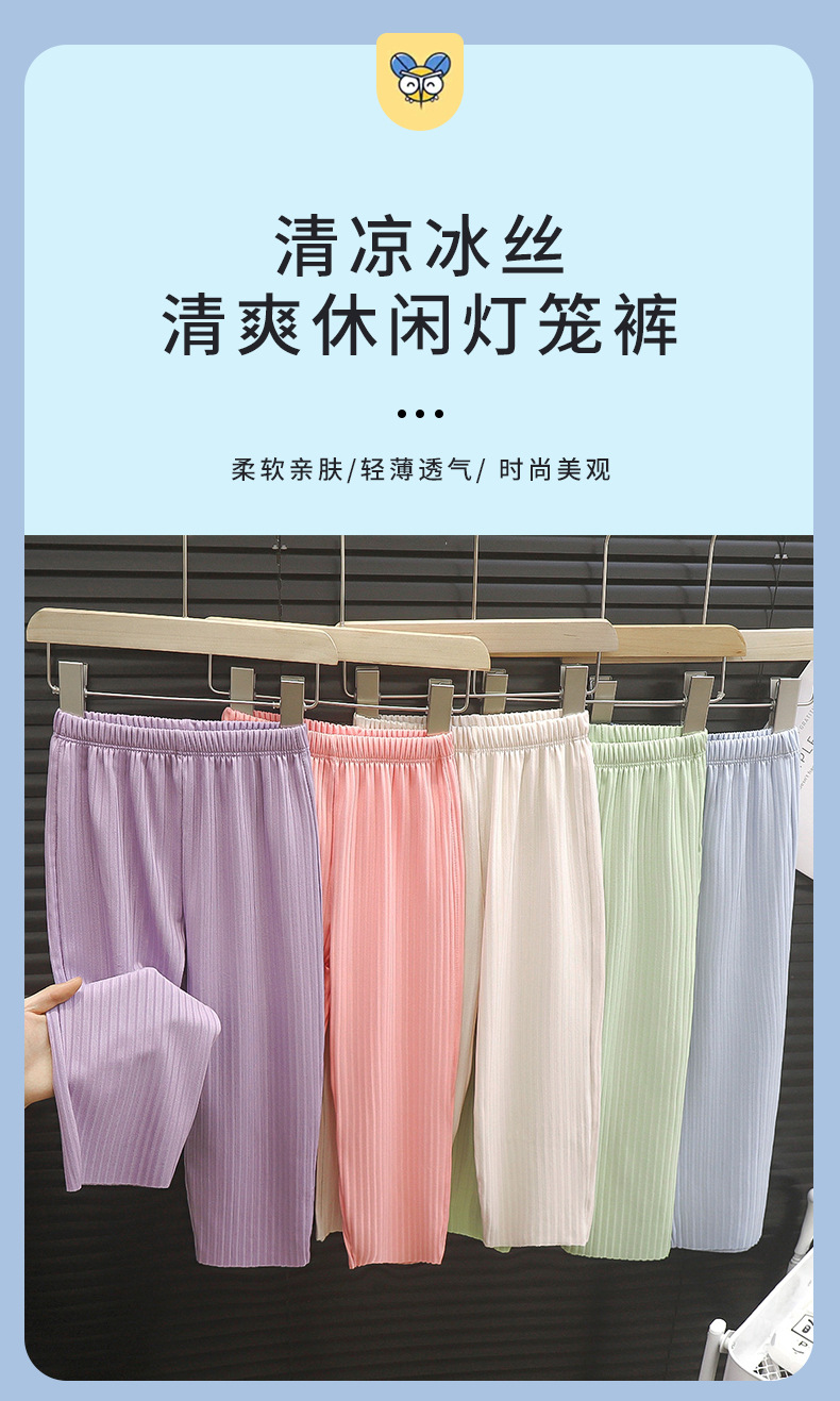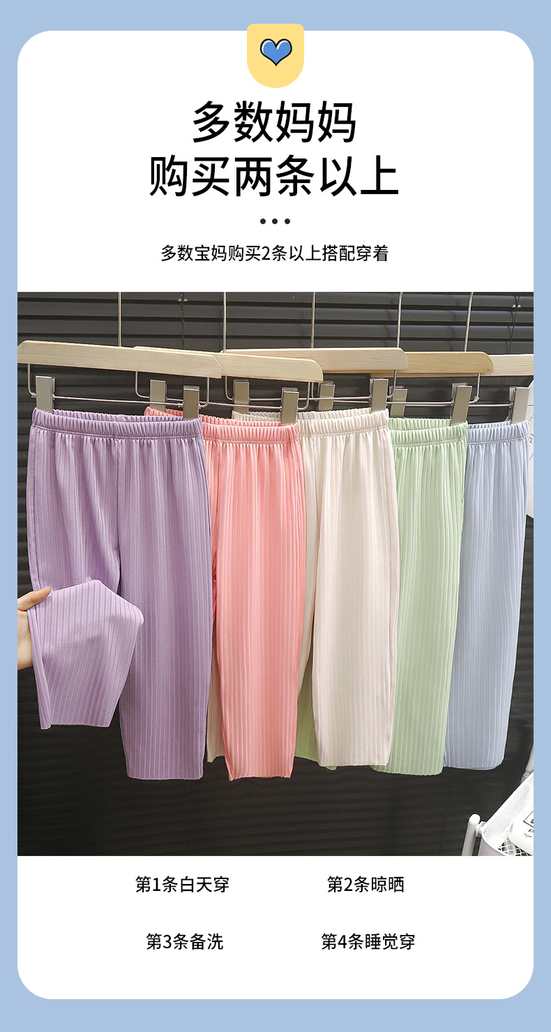어린이 모기 방지 바지 단색 여아 캐주얼 자외선 차단 바지 여름 아이스 감각 긴바지 도매 중소 아동 한국 스타일 아동복스토어 가기