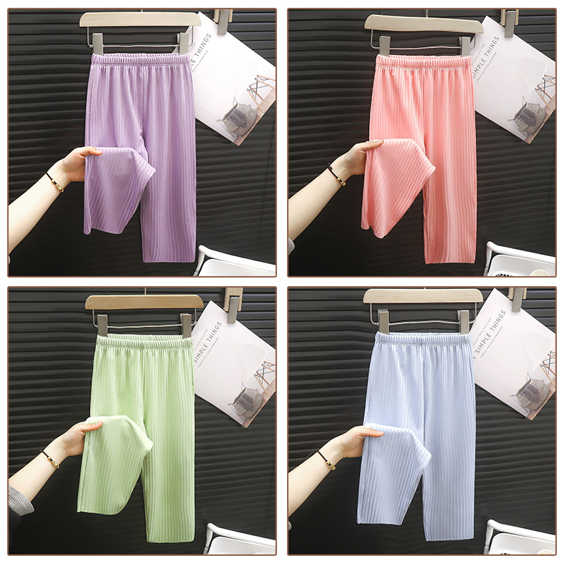 어린이 모기 방지 바지 단색 여아 캐주얼 자외선 차단 바지 여름 아이스 감각 긴바지 도매 중소 아동 한국 스타일 아동복