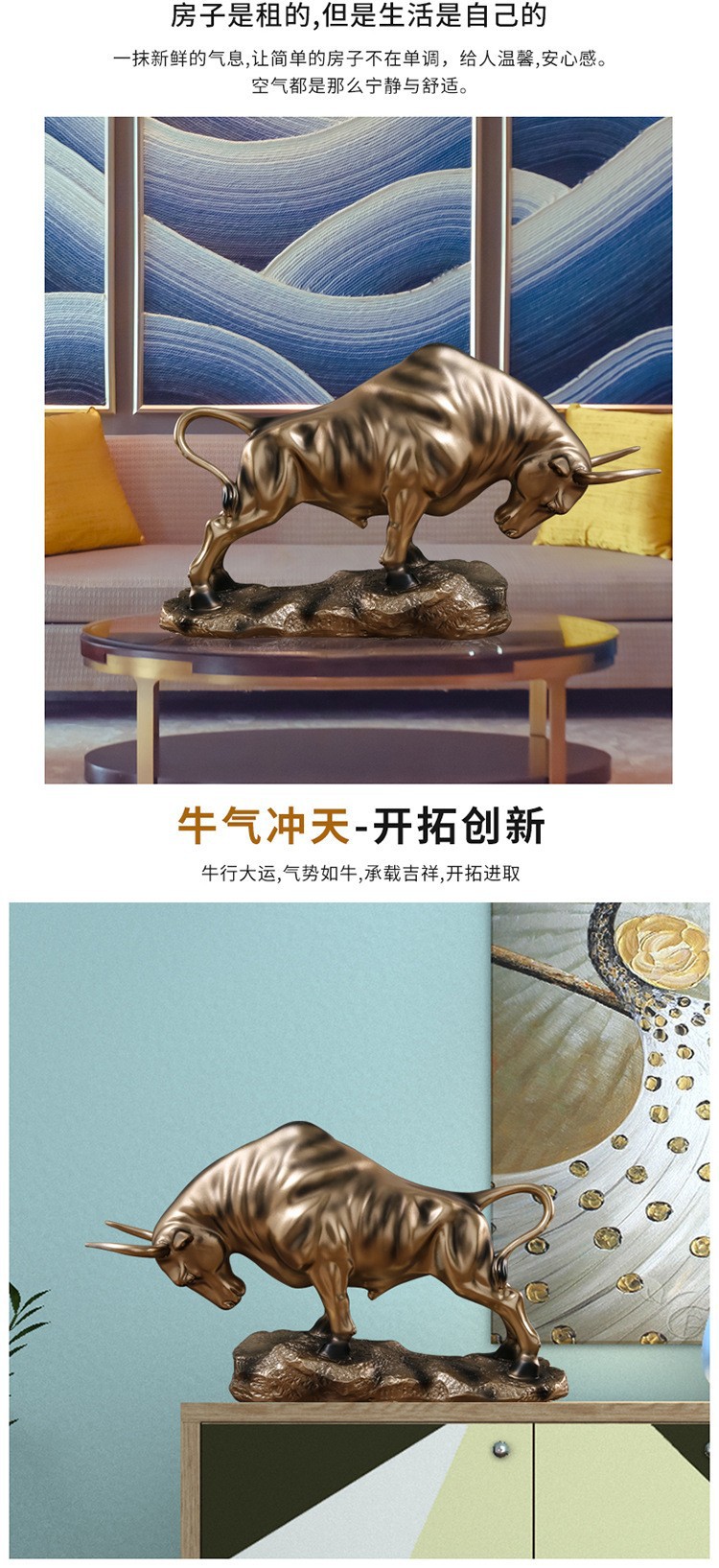 크리에이티브 라이트 럭셔리 황소 수지 장식 창조적 인 조각 거실 와인 내각 연구 사무실 아트 홈 장식