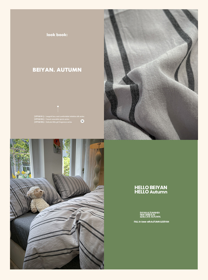 • 1.5m 침대 시트 4종 세트 [이불커버는 200*230cm 이불심에 적합]