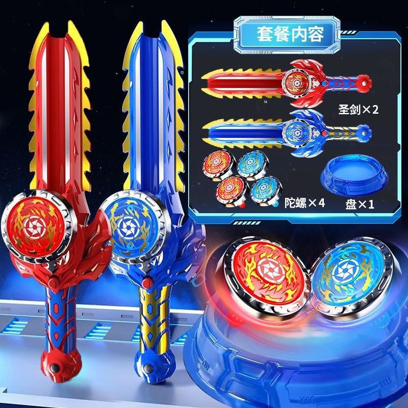 새로운 합금 발광 검 모양의 자이로 어린이 전쟁 신 스핀 자이로 전쟁 소년 장난감 거룩한 검 자이로 발사기