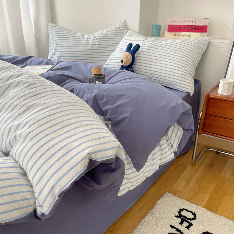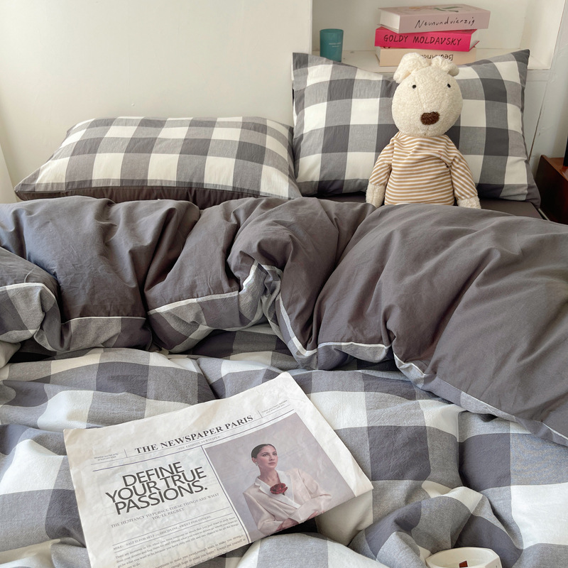 면 원사 염색 클래스 A 세척 된 코튼 4 피스 세트 인쇄 스타일 격자 무늬 퀼트 커버 침대 시트 면화 학생 기숙사 3 피스 세트스토어 가기