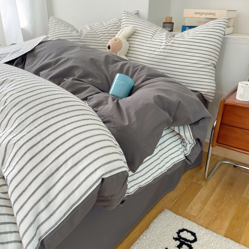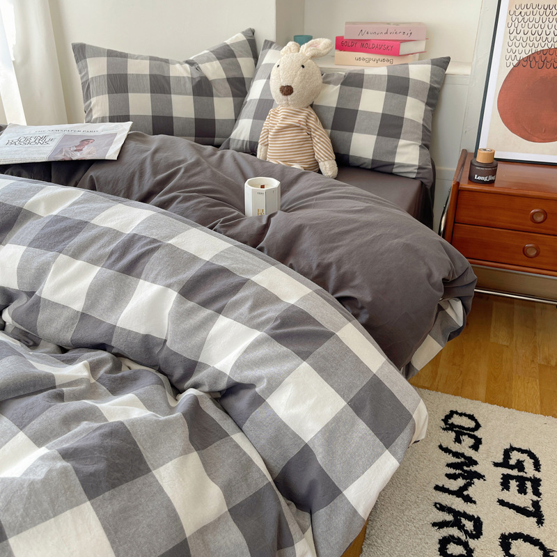면 원사 염색 클래스 A 세척 된 코튼 4 피스 세트 인쇄 스타일 격자 무늬 퀼트 커버 침대 시트 면화 학생 기숙사 3 피스 세트