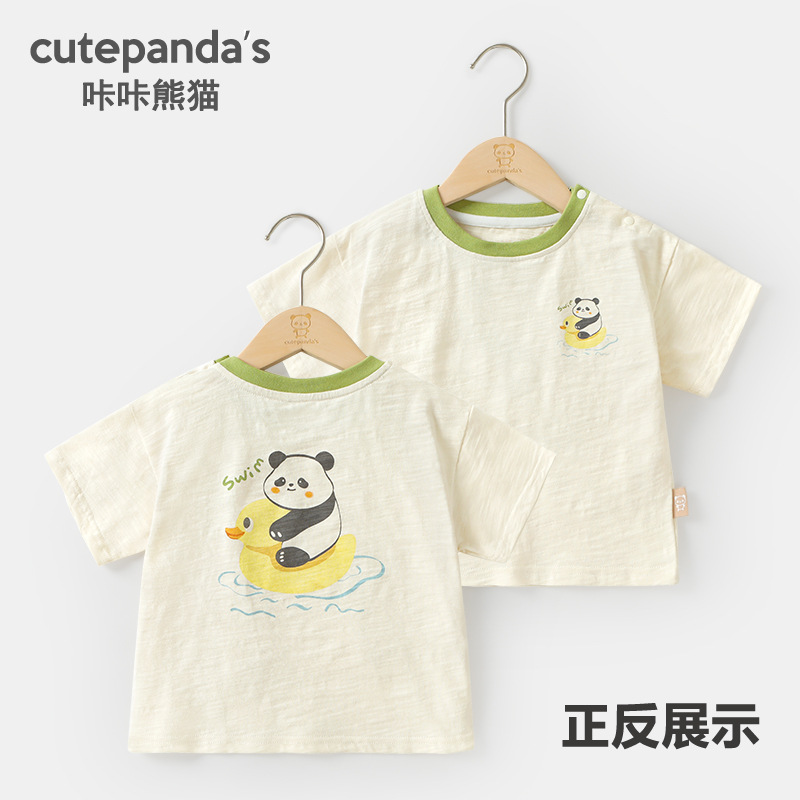 카카 팬더 소년 캐주얼 반팔 티셔츠 아기 옷 여름 옷 소녀 아기 어린이 반소매 탑 여름스토어 가기
