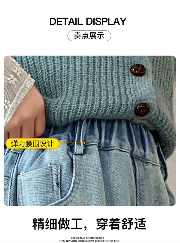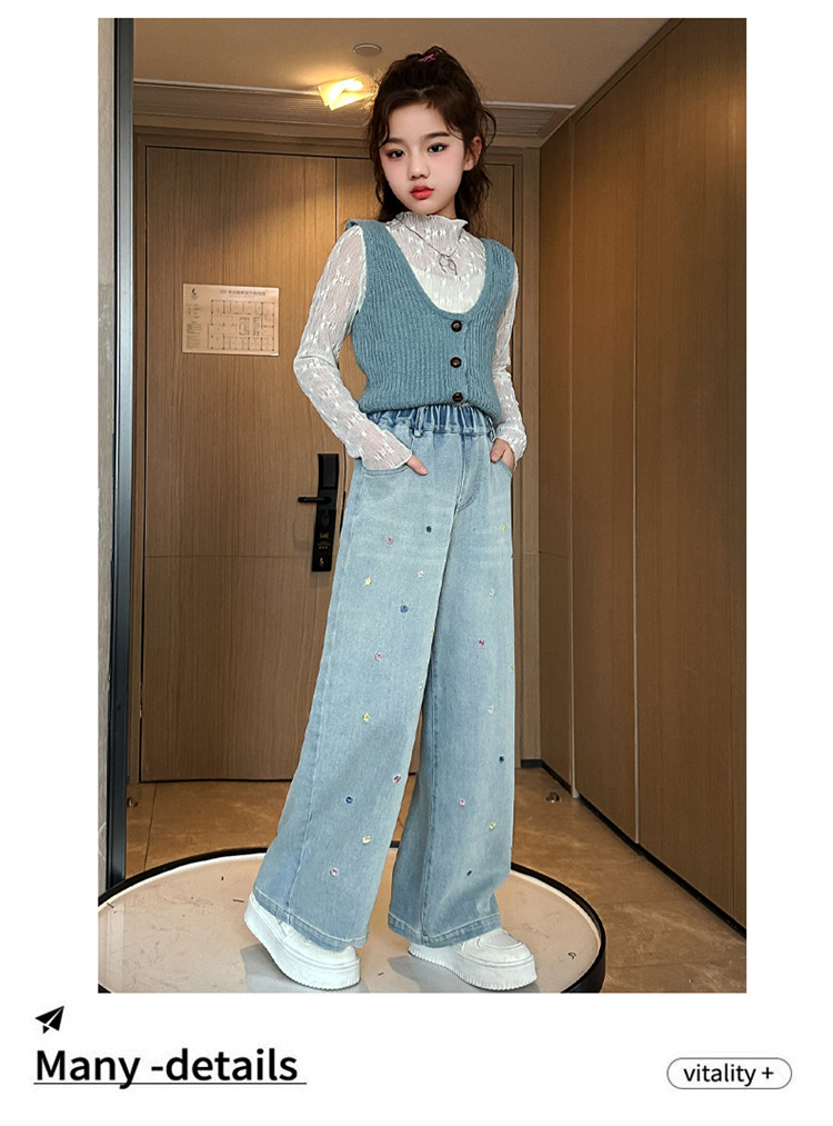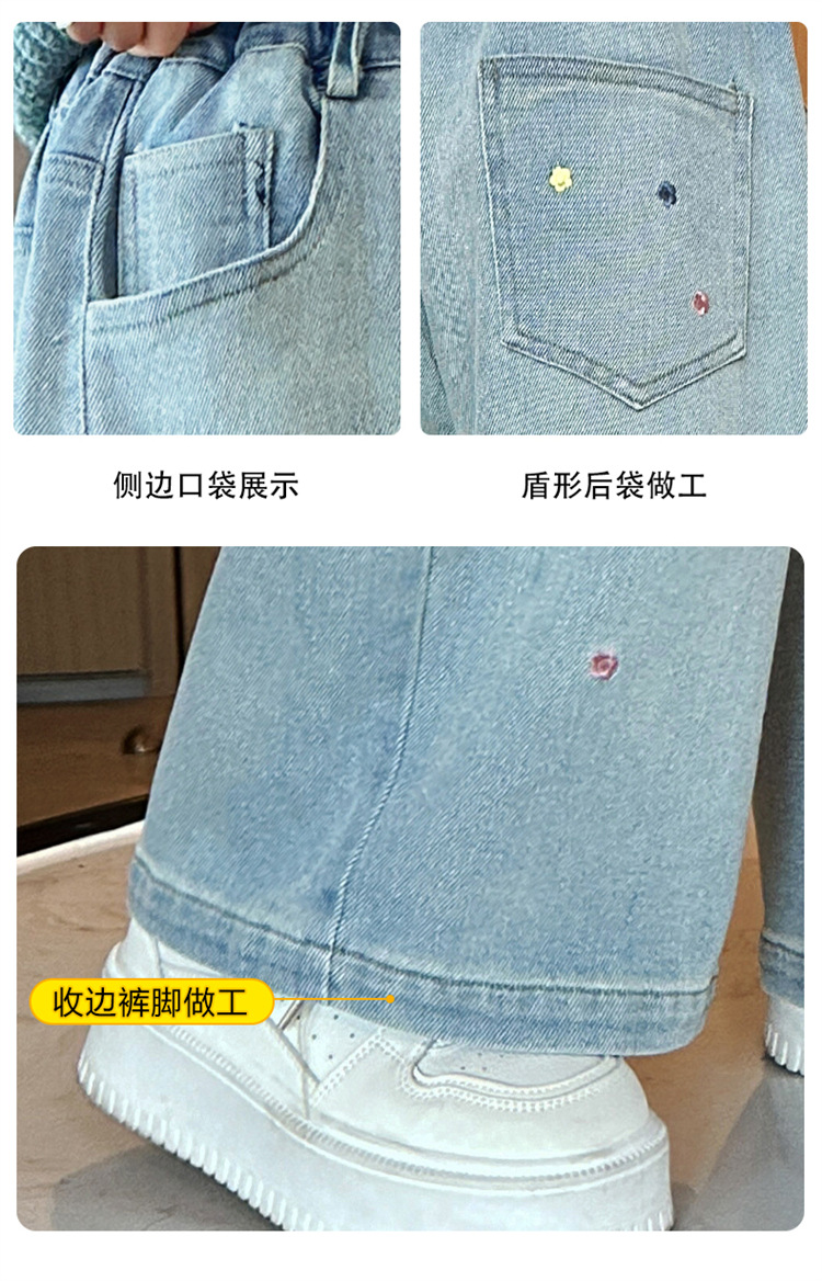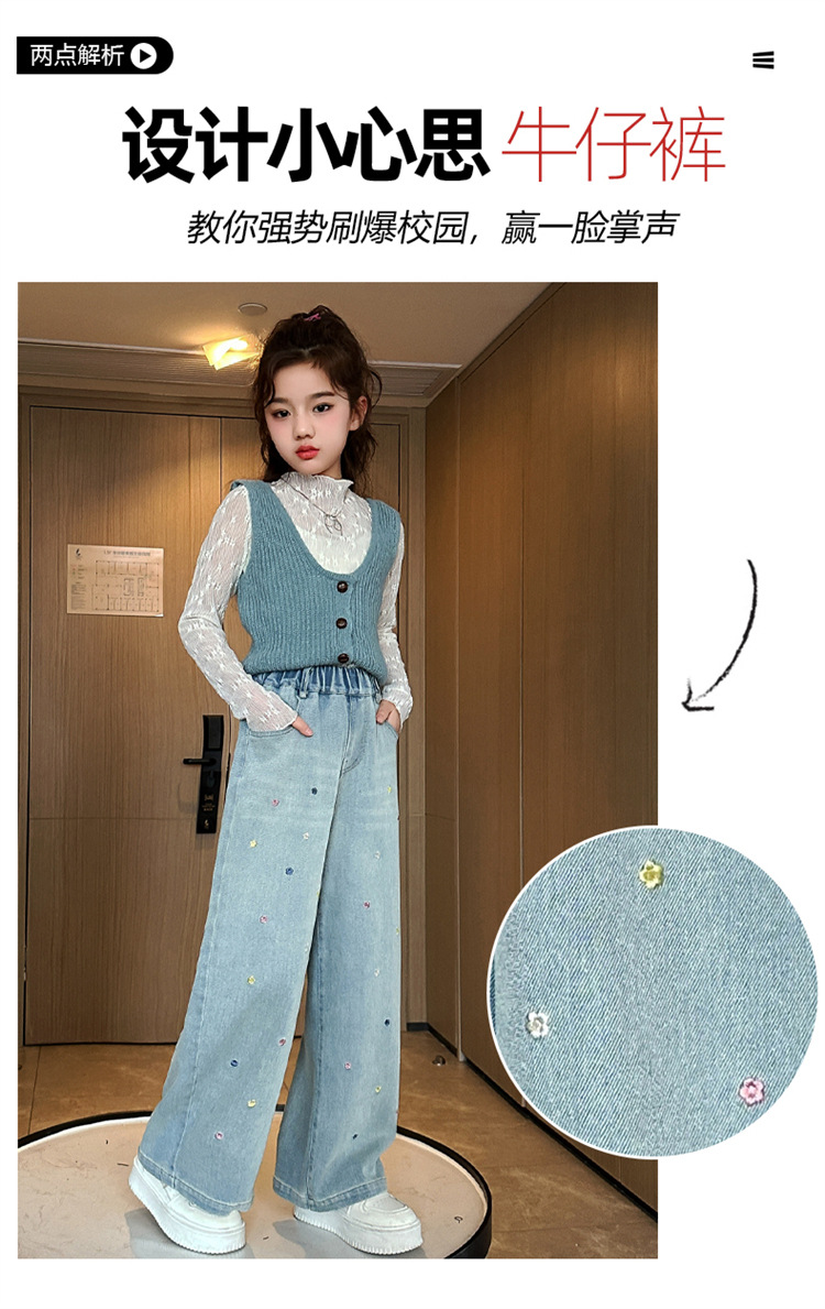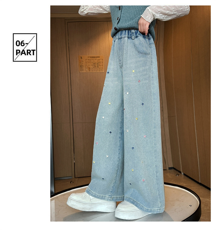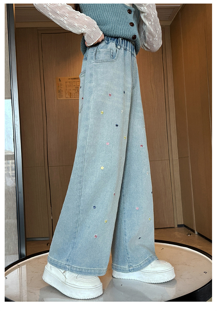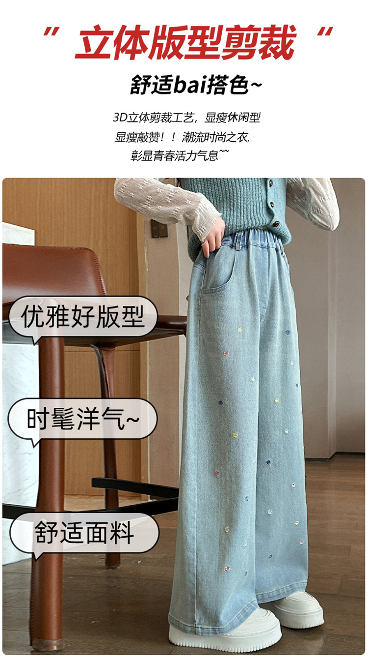 소녀 바지 봄과 가을 큰 어린이 서양식 스트레이트 레그 봄 청바지 인터넷 연예인 프라이드 스트리트 트렌디 쿨 봄 어린이 와이드 레그 바지