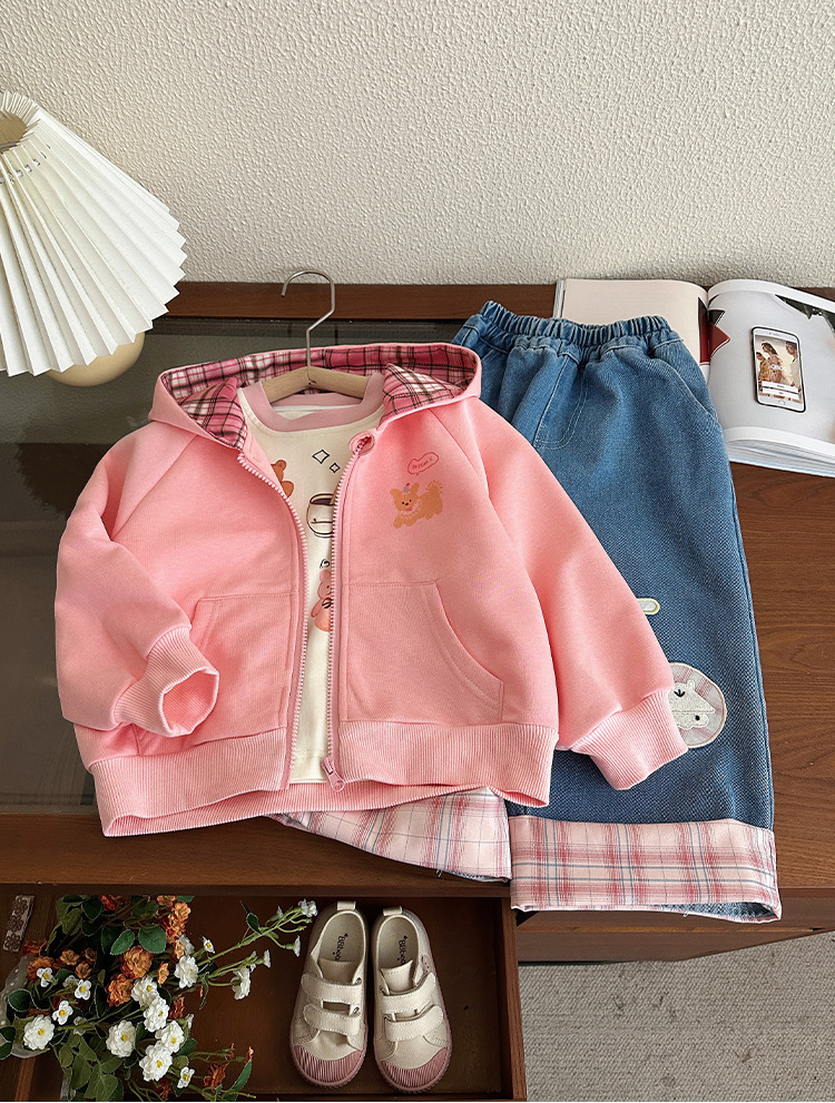 소녀 코트 봄과 가을 2025 새로운 어린이 봄 서양식 후드 스웨트 셔츠 아기 소녀의 봄 탑 카디건