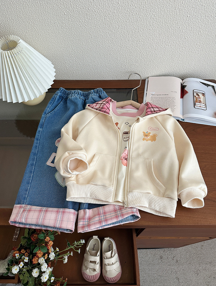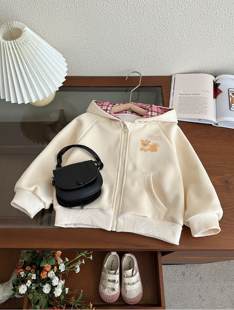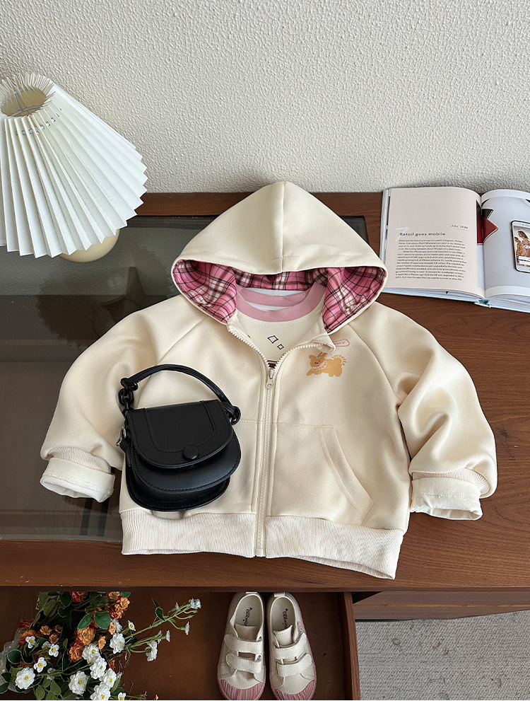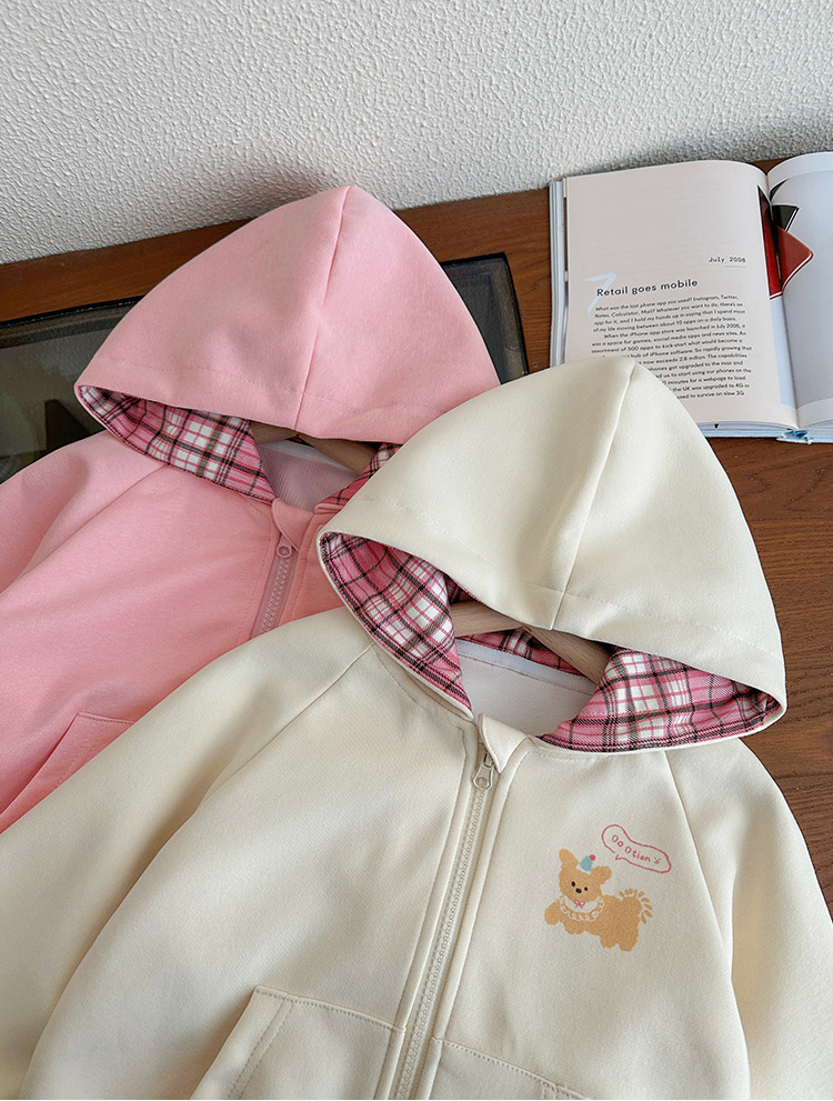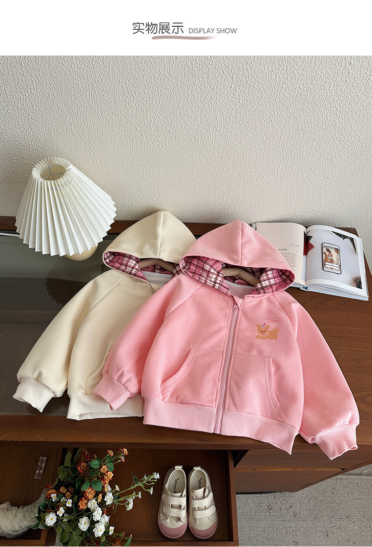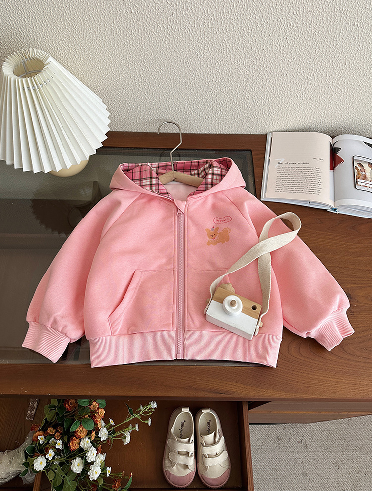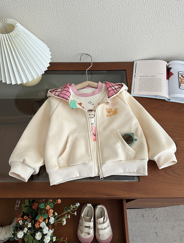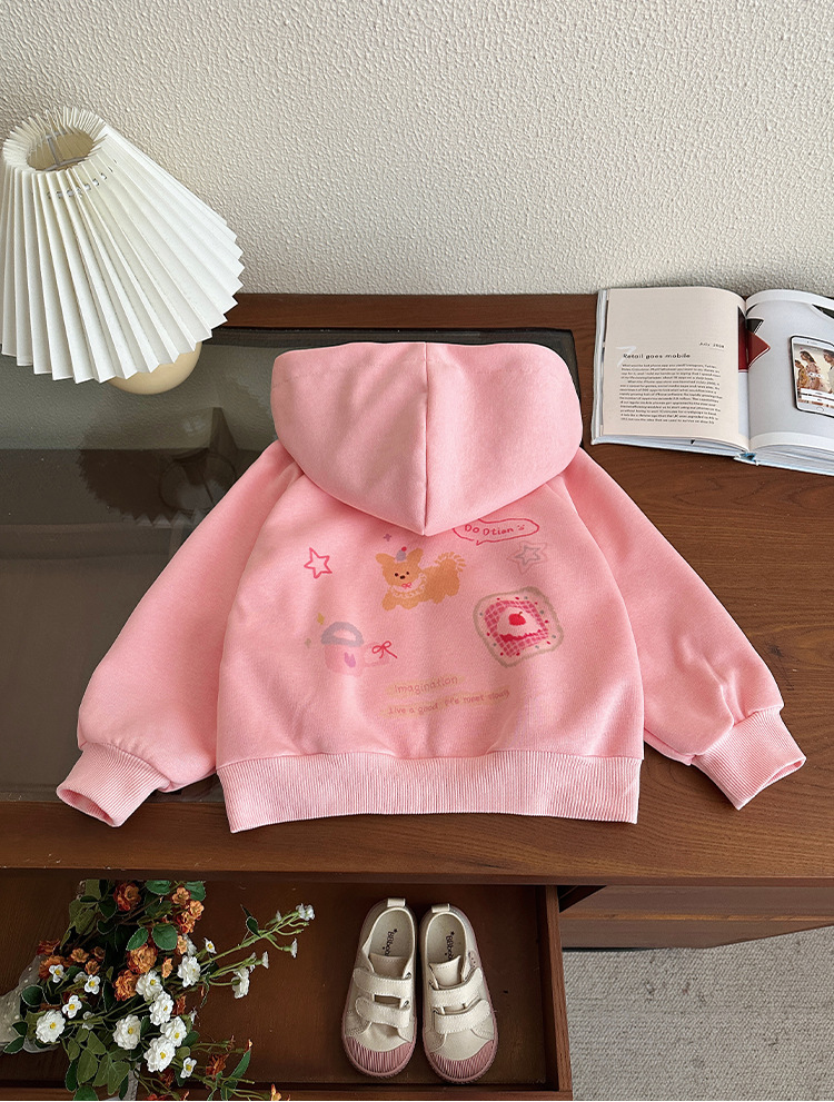소녀 코트 봄과 가을 2025 새로운 어린이 봄 서양식 후드 스웨트 셔츠 아기 소녀의 봄 탑 카디건스토어 가기