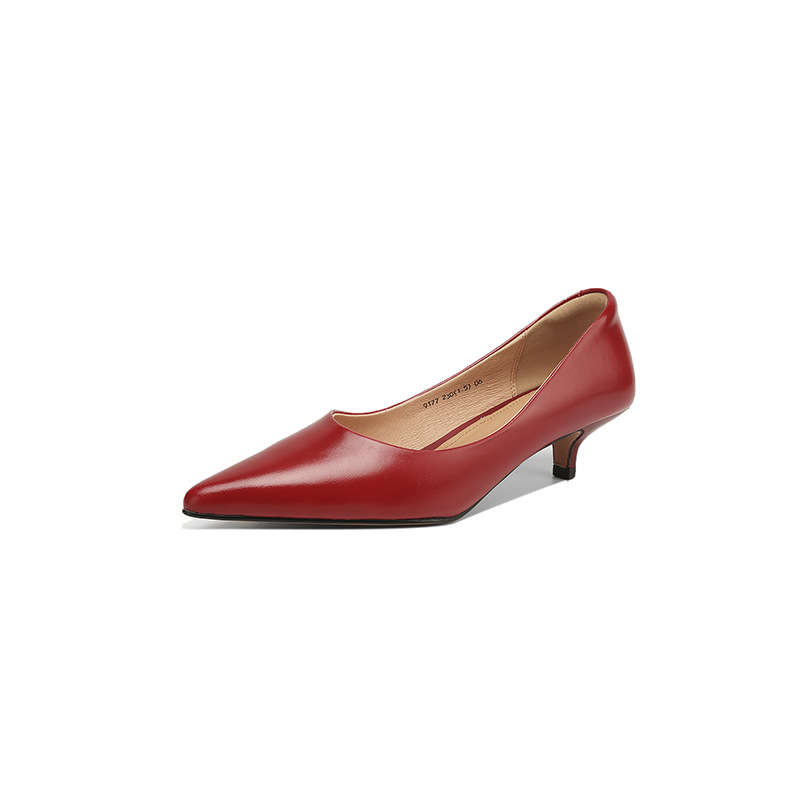 풀 가죽 미니멀리스트 미드 힐 2025 봄 새로운 포인팅 신발 여성 정품 가죽 작업장 하이힐 레드 슈즈스토어 가기