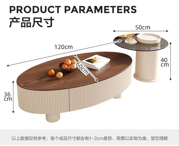 • 흰색 캐비닛 양각 나뭇결 단단한 나무 보드 커피 테이블: 120+50 회색 유리 흰색 기둥