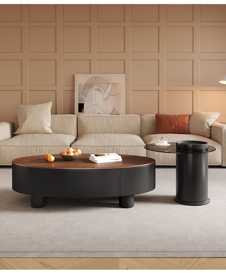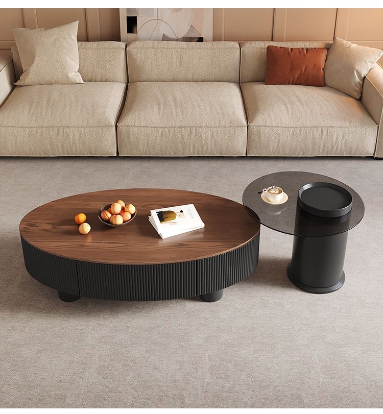 • 블랙 캐비닛 양각 나뭇결 단단한 나무 보드 커피 테이블: 120+50 회색 유리