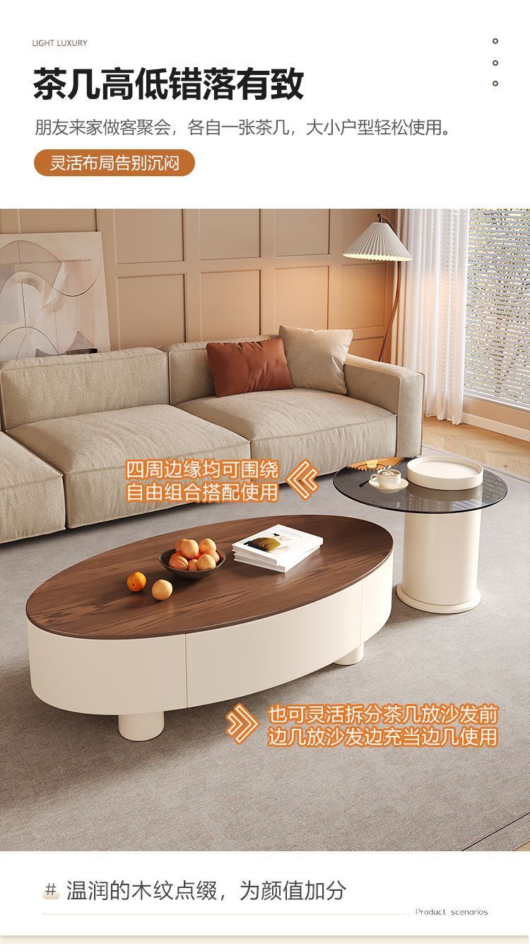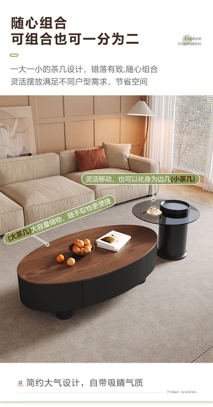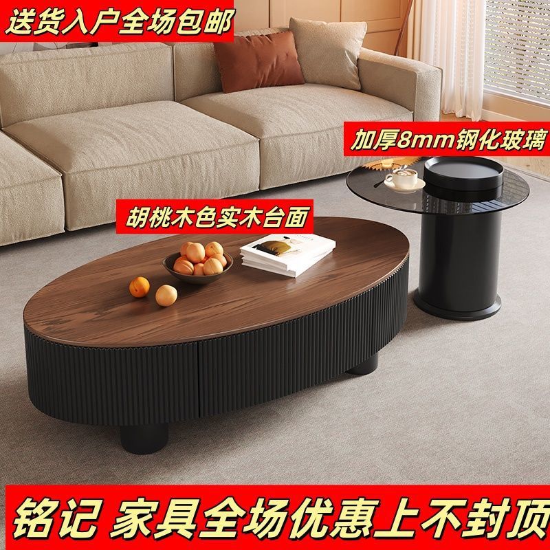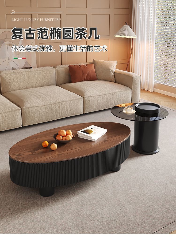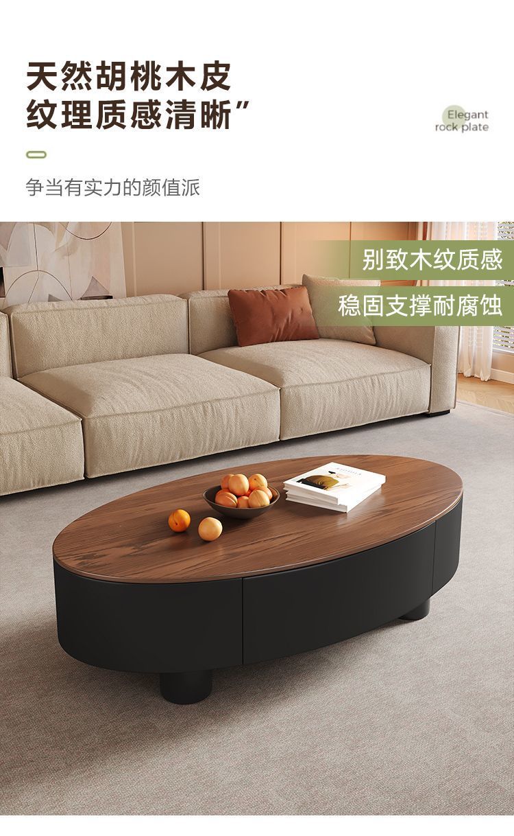새로운 스타일 중국 타원형 이탈리아 스타일의 중간 고대 암판 커피 테이블 거실 빛 럭셔리 홈 현대 간단한 사무실 테이블