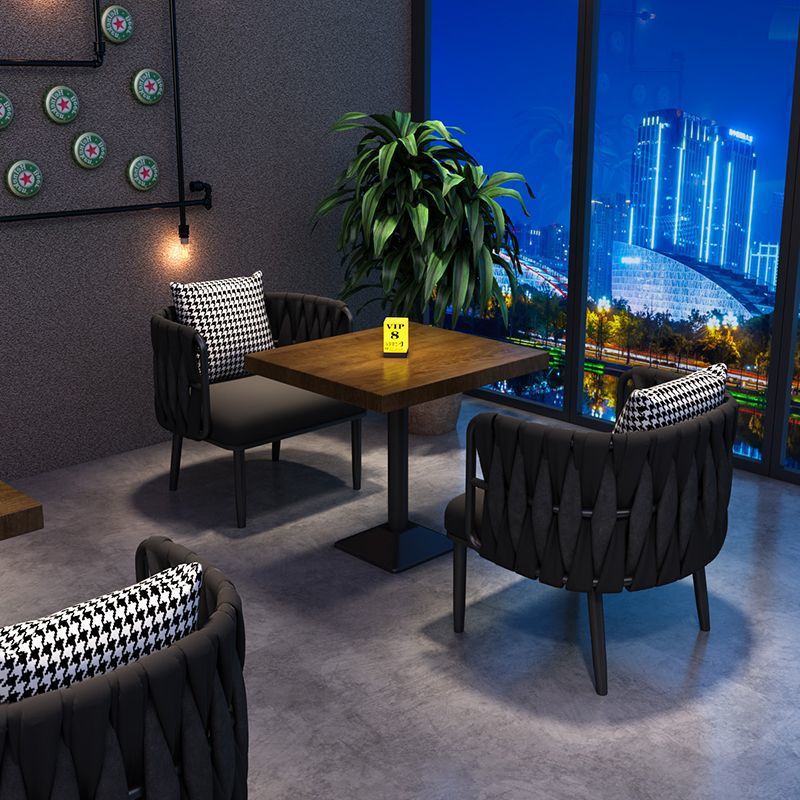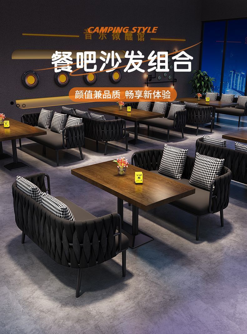 빈티지 산업 스타일 바 카드 시트 소파 레스토랑 커피 음악 다이닝 바 청바 비스트로 테이블과 의자 조합 상업스토어 가기