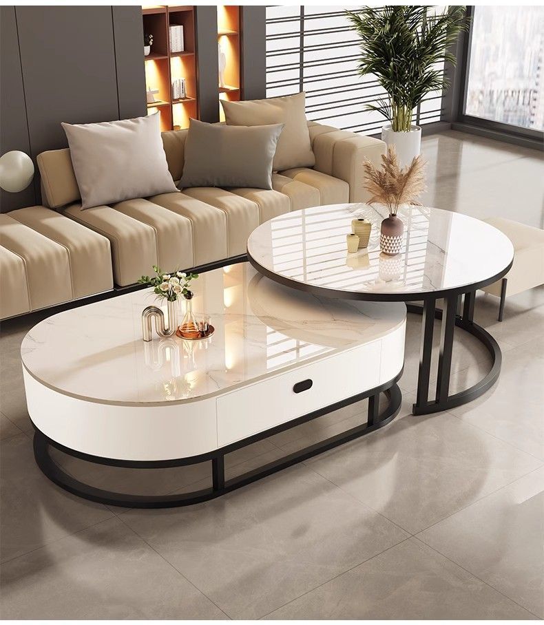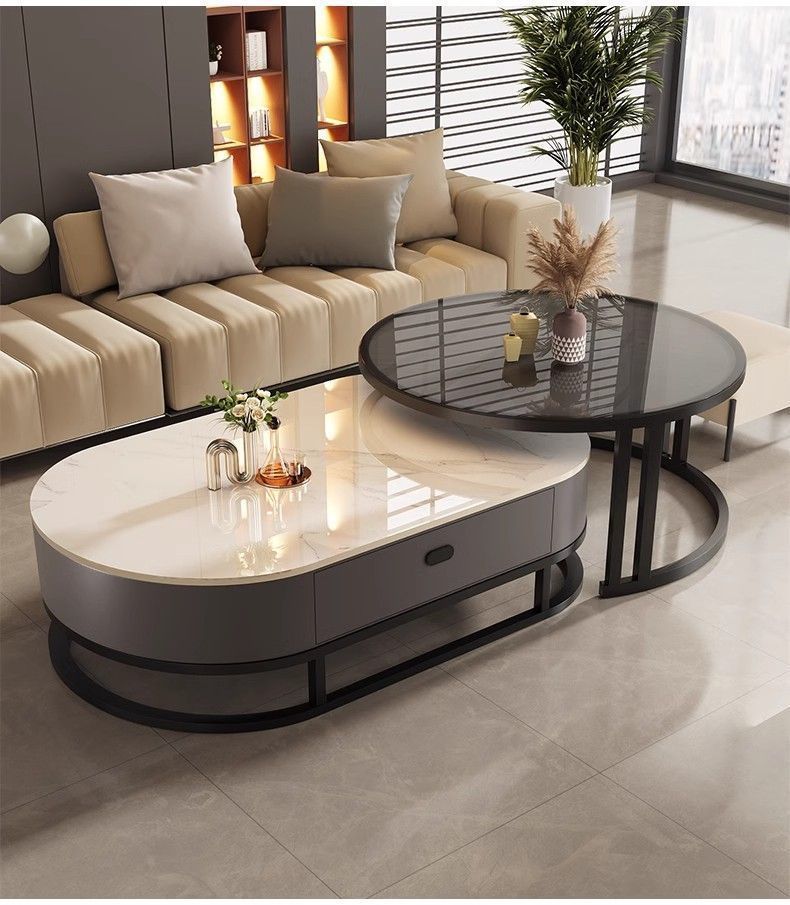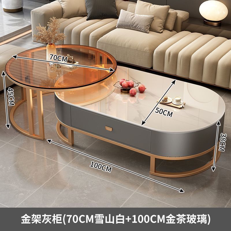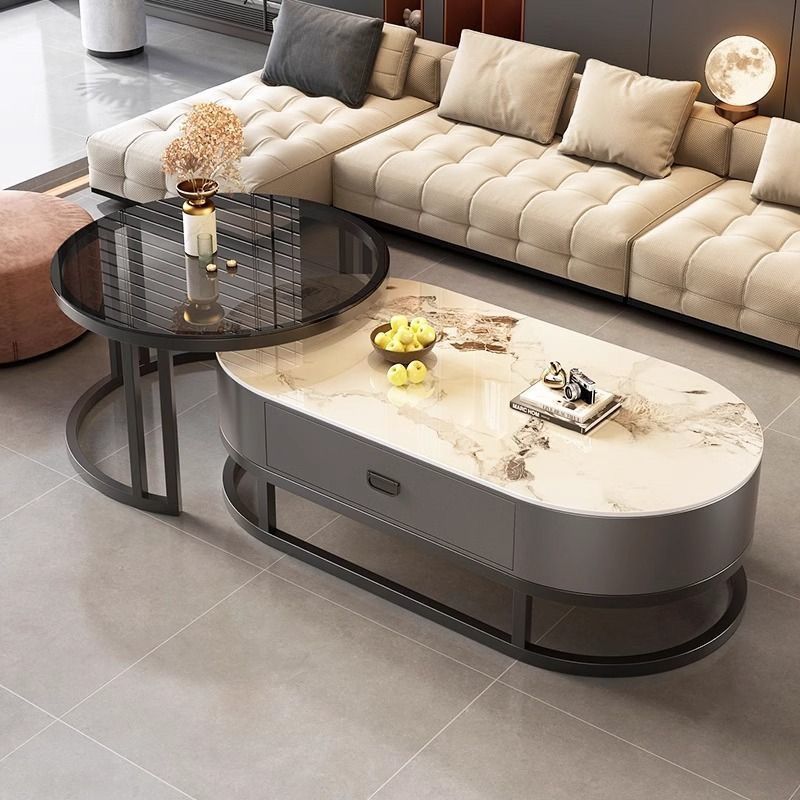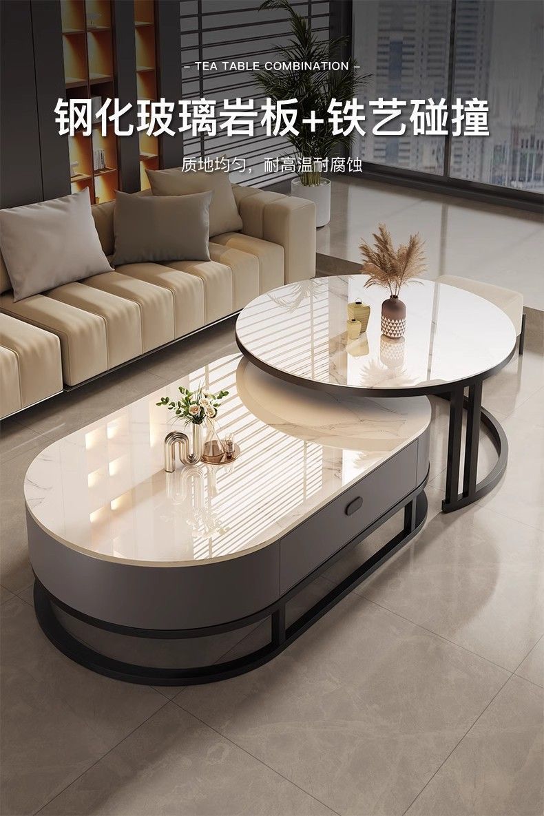 록 보드 커피 테이블 거실 홈 2024 새로운 입장 럭셔리 현대 차 테이블 하이 엔드 타원형 인터넷 유명 작은 아파트