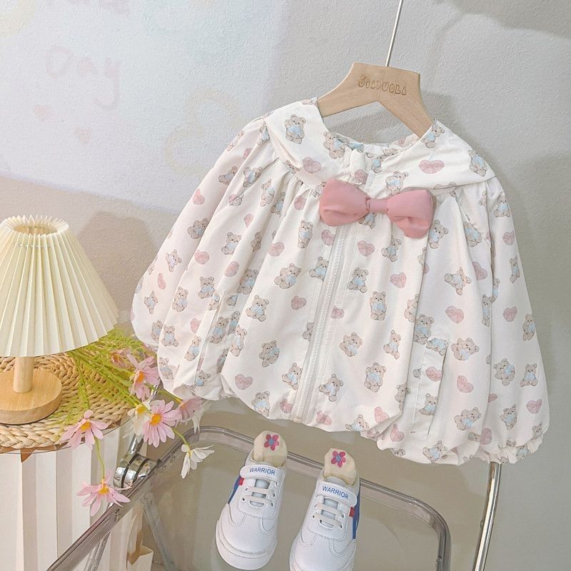 소녀의 세련된 코트 봄과 가을 2025 새로운 어린이 활 유행 아기의 귀여운 지퍼 후드 탑스토어 가기