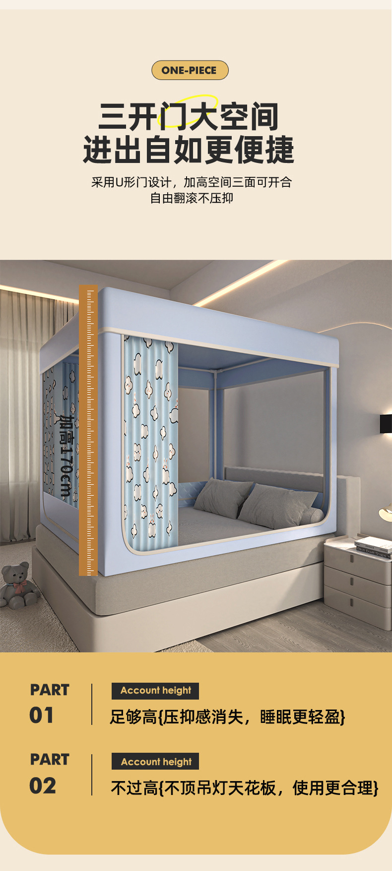 • 행운의 곰 [암막 커튼 포함] 침대 커튼 + 모기장 + 브래킷