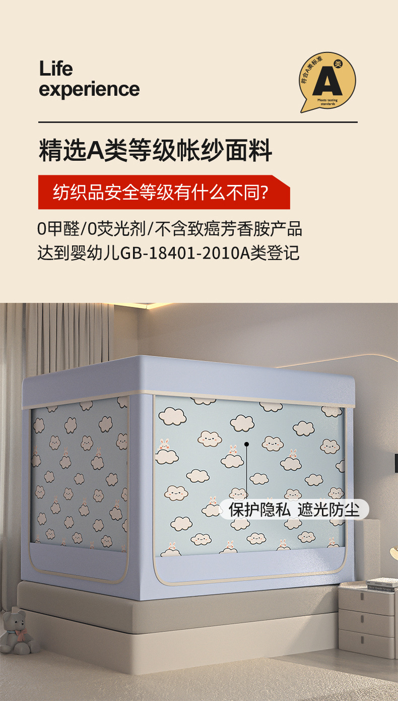 • 백운토끼 [암막커튼 포함] 침대커튼 + 모기장 + 브라켓