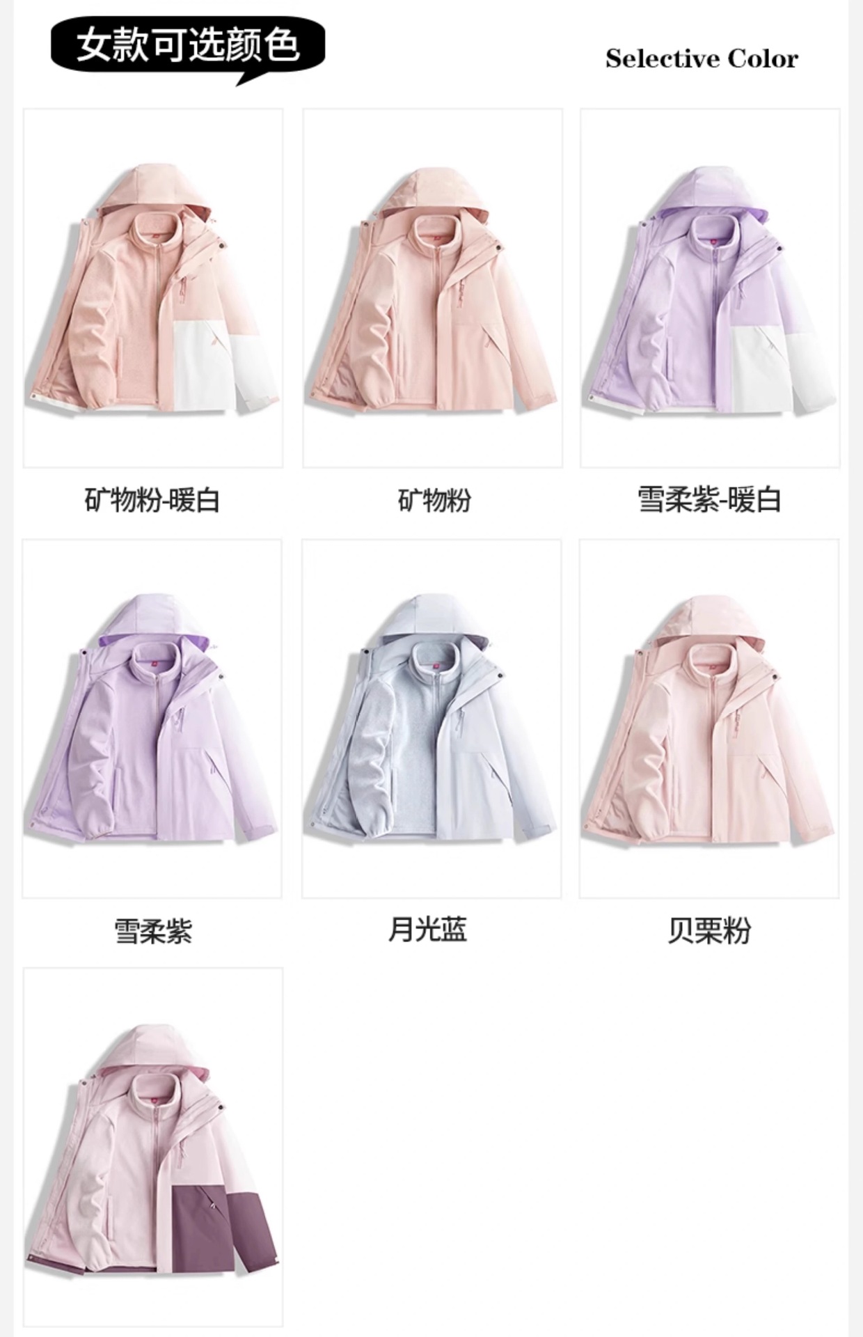 • 남녀 동일 스타일 - 닝예 퍼플 [재킷+폴라플리스라이너+다운라이너] 3종세트