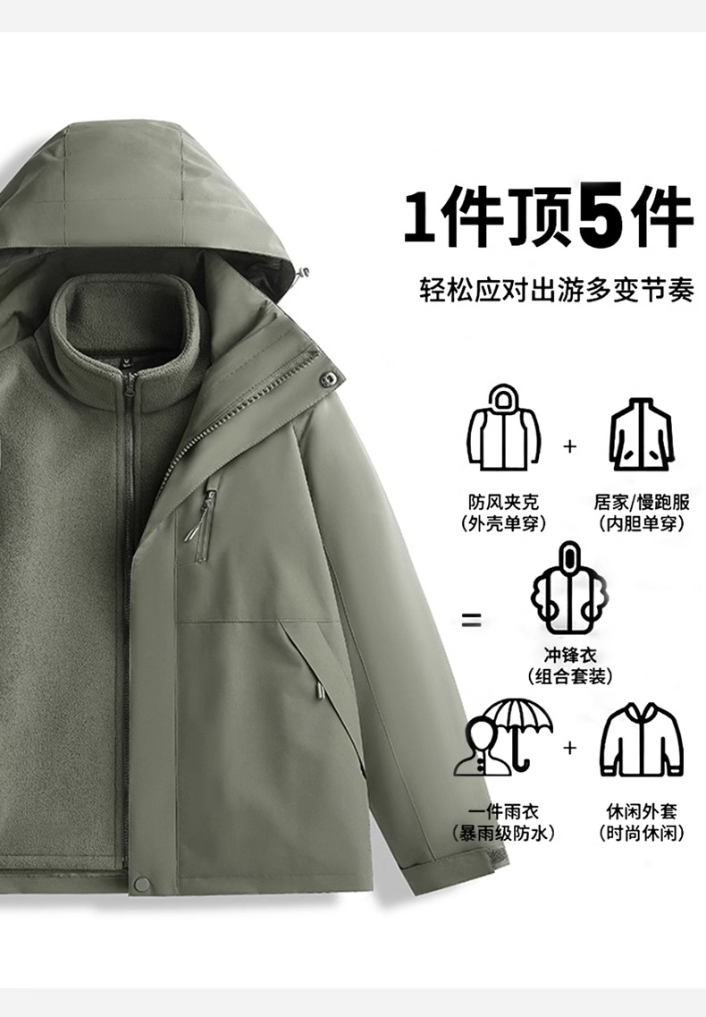 • 남성, 여성 동일 스타일 - 다크 아미 그린 [3-in-1 라이너 탈부착 가능]