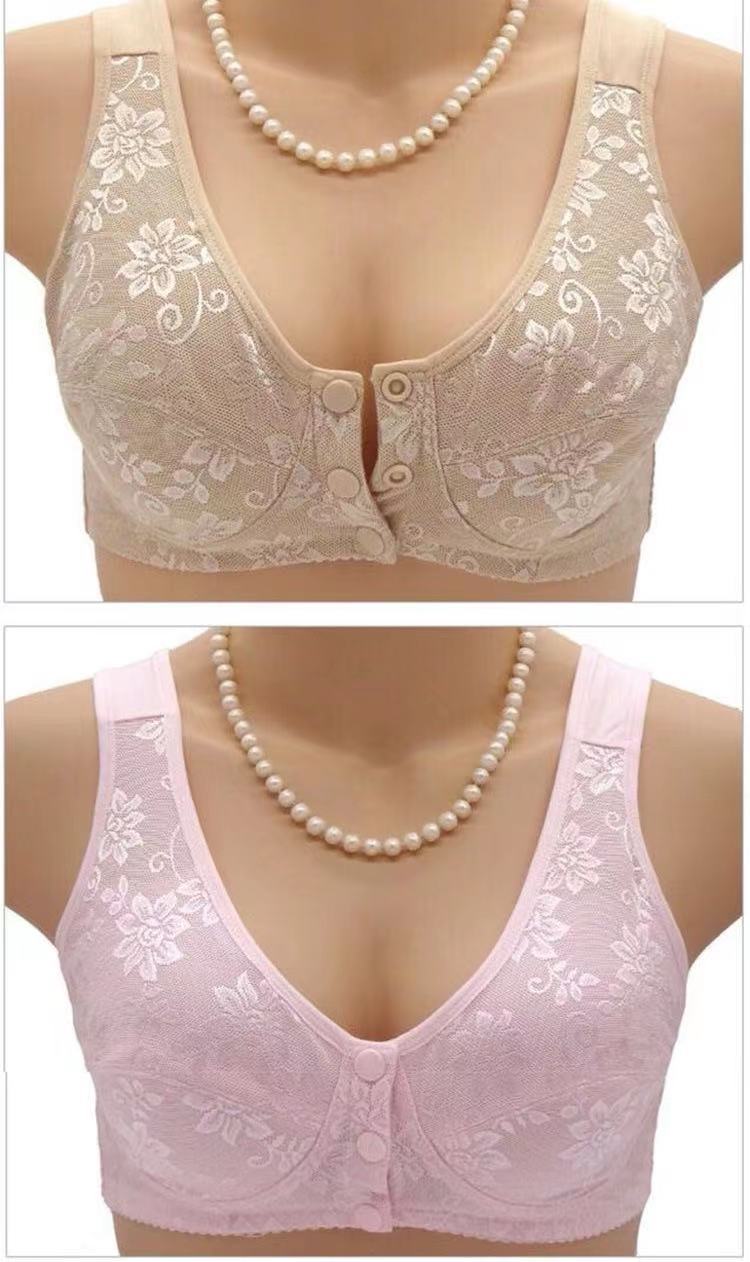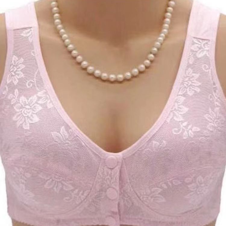중년 및 노인 어머니에게 선호되는 레이스 프론트 오프닝 버클 플러스 사이즈 여성을위한 편안한 얇은 비 림리스 조끼 속옷 브래지어