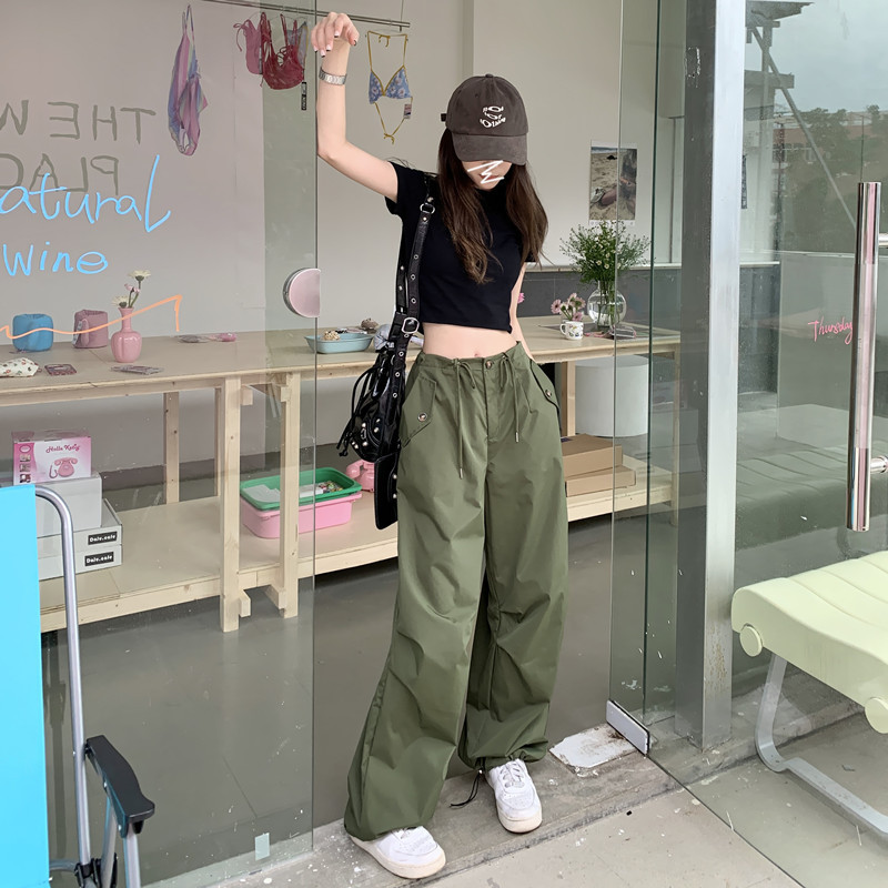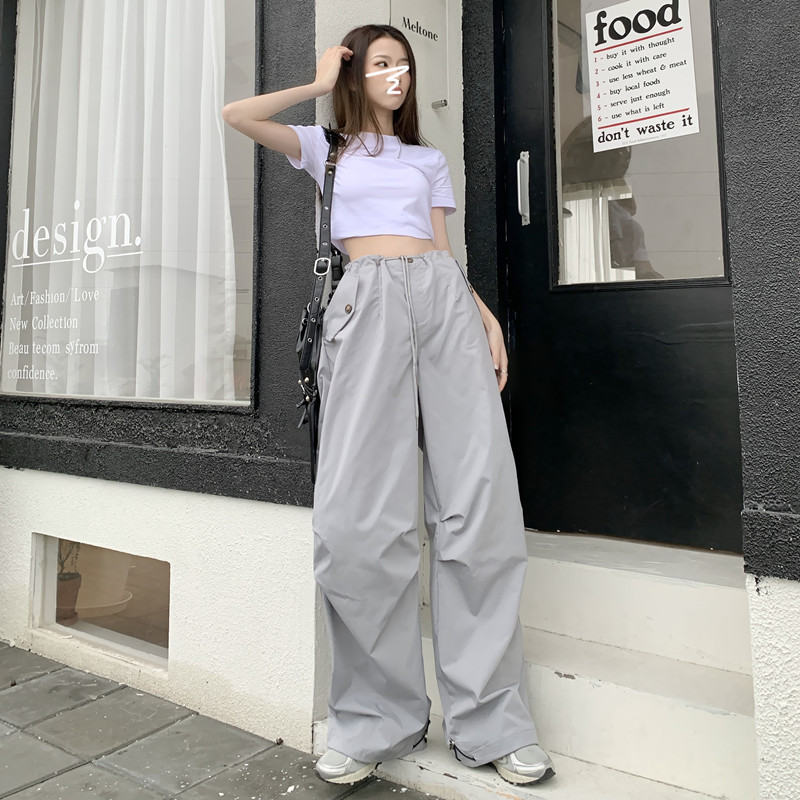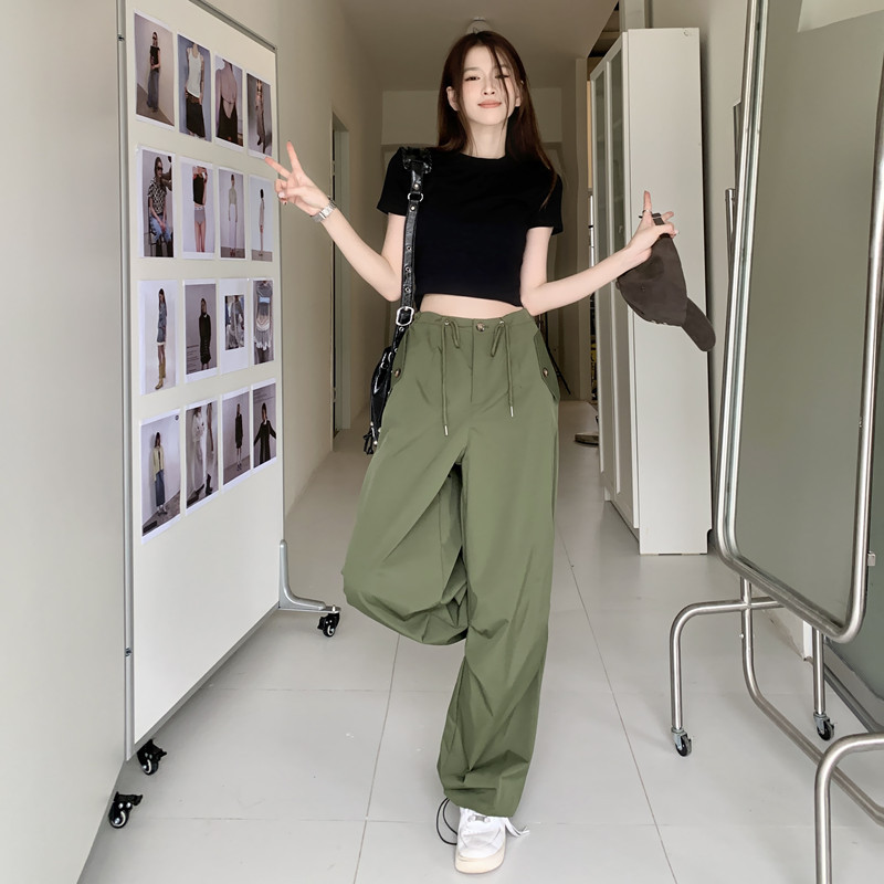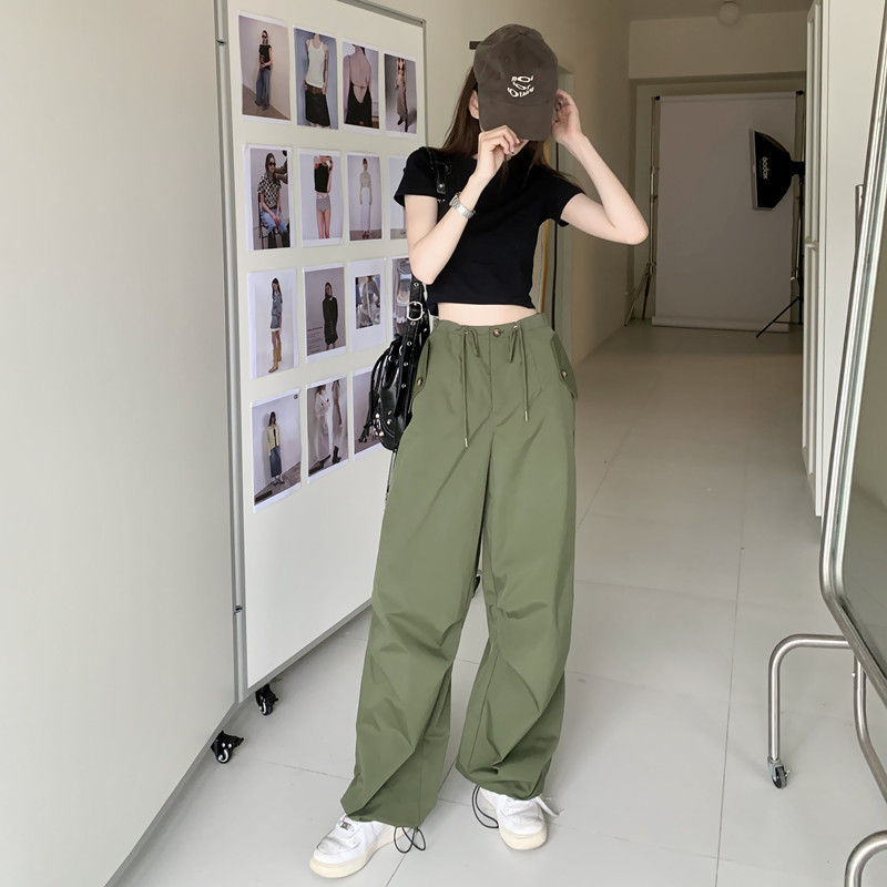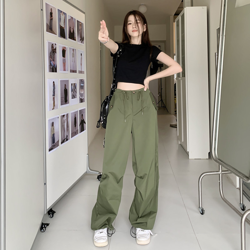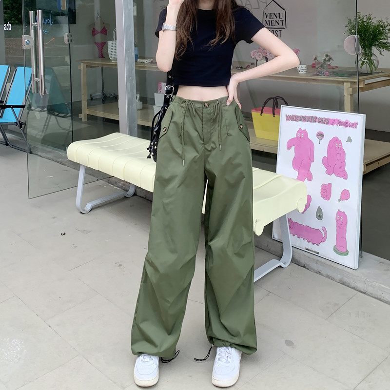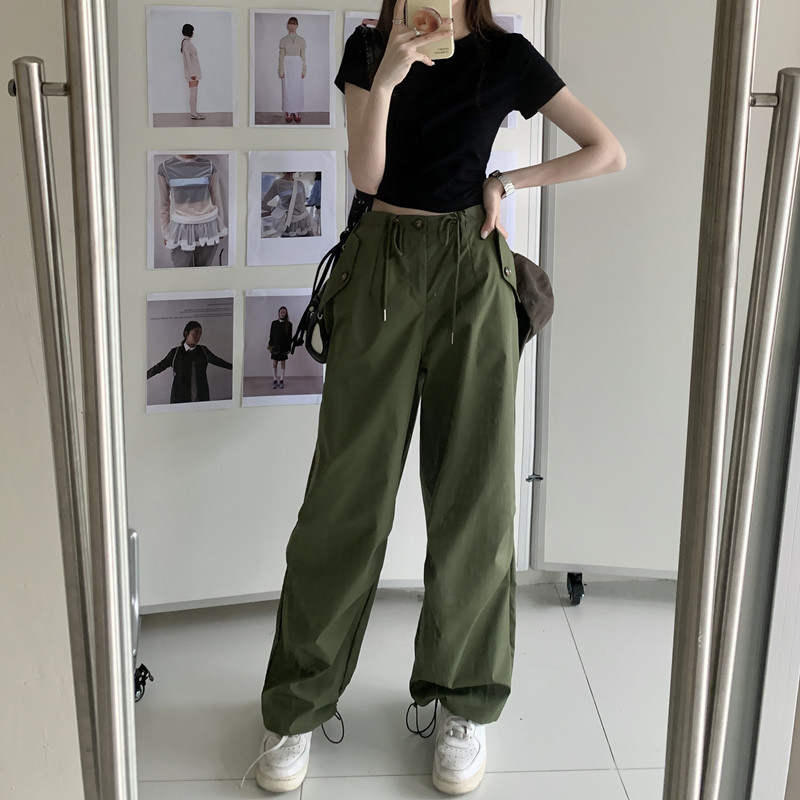 미국의 스트레이트 툴링 바지 여성의 봄과 가을 2025 새로운 도착 다리 캐주얼 바지 재즈 바지 드로스트링 클라이버 바지스토어 가기