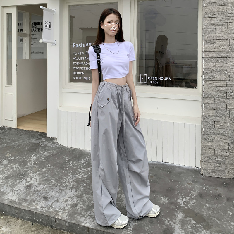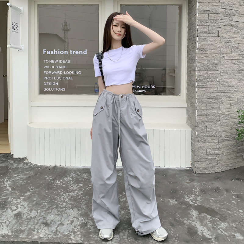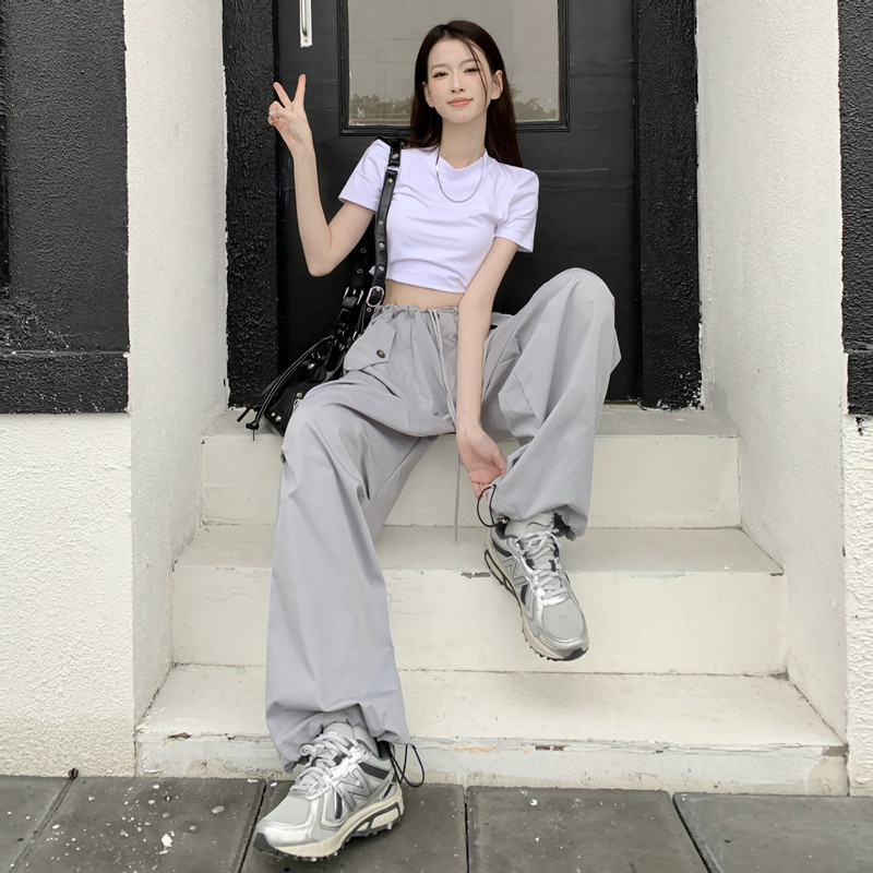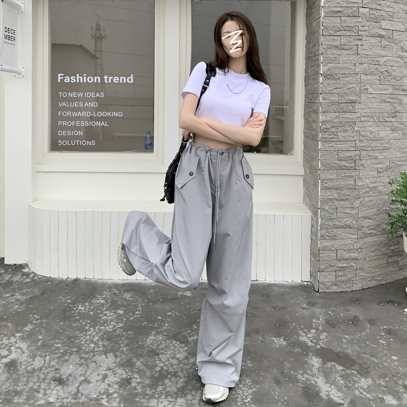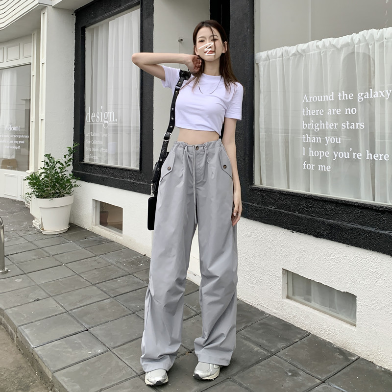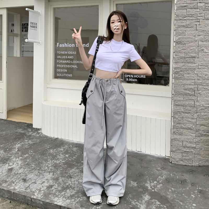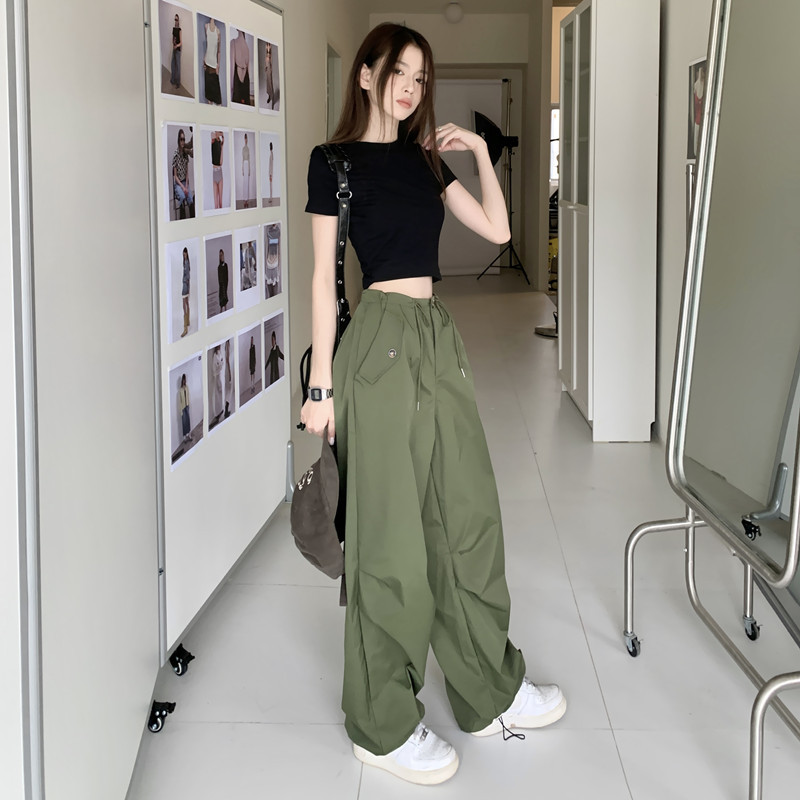 미국의 스트레이트 툴링 바지 여성의 봄과 가을 2025 새로운 도착 다리 캐주얼 바지 재즈 바지 드로스트링 클라이버 바지스토어 가기