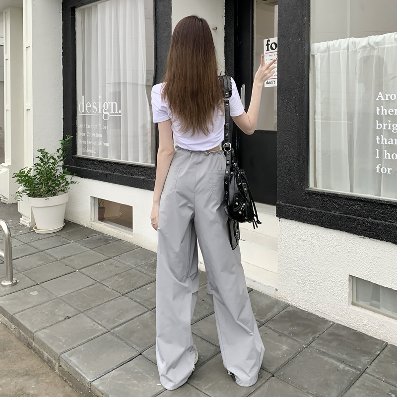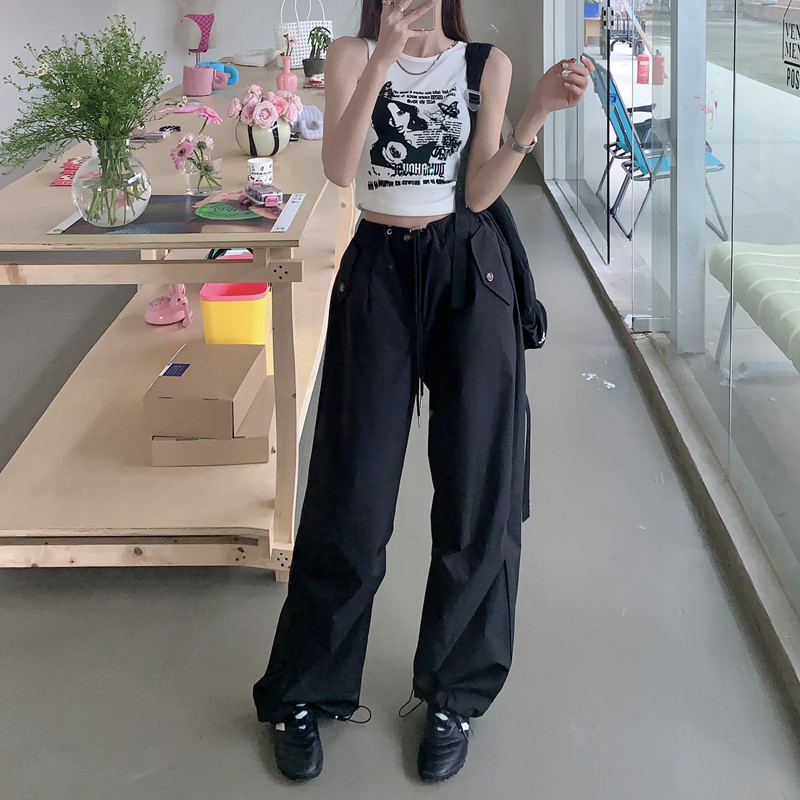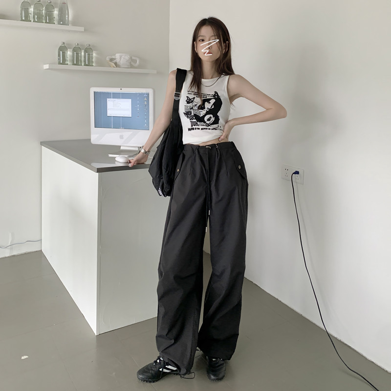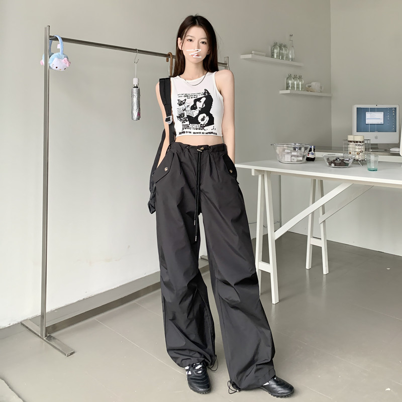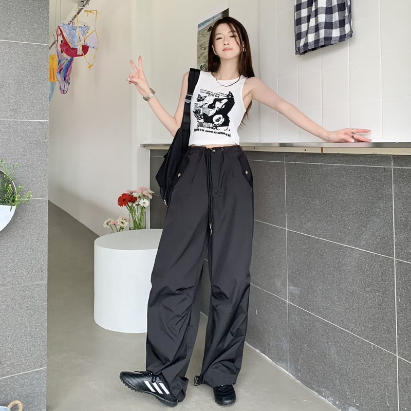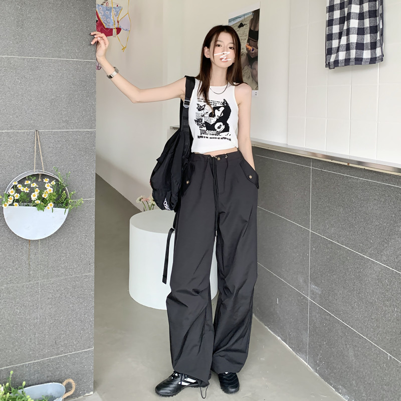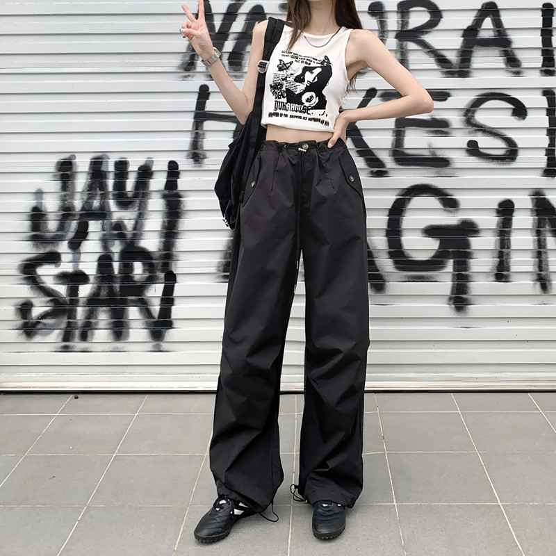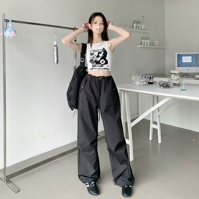 미국의 스트레이트 툴링 바지 여성의 봄과 가을 2025 새로운 도착 다리 캐주얼 바지 재즈 바지 드로스트링 클라이버 바지
