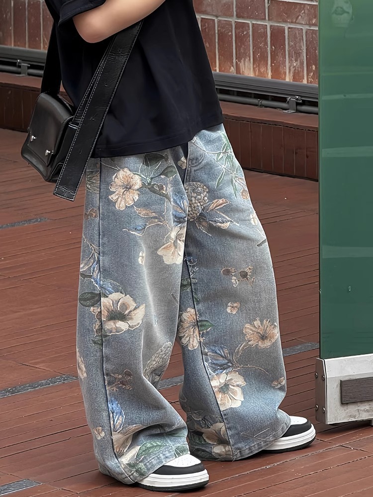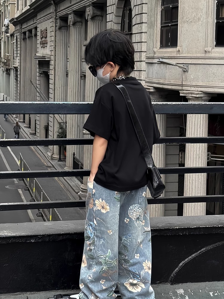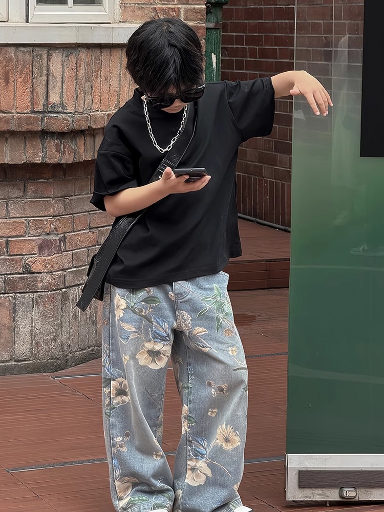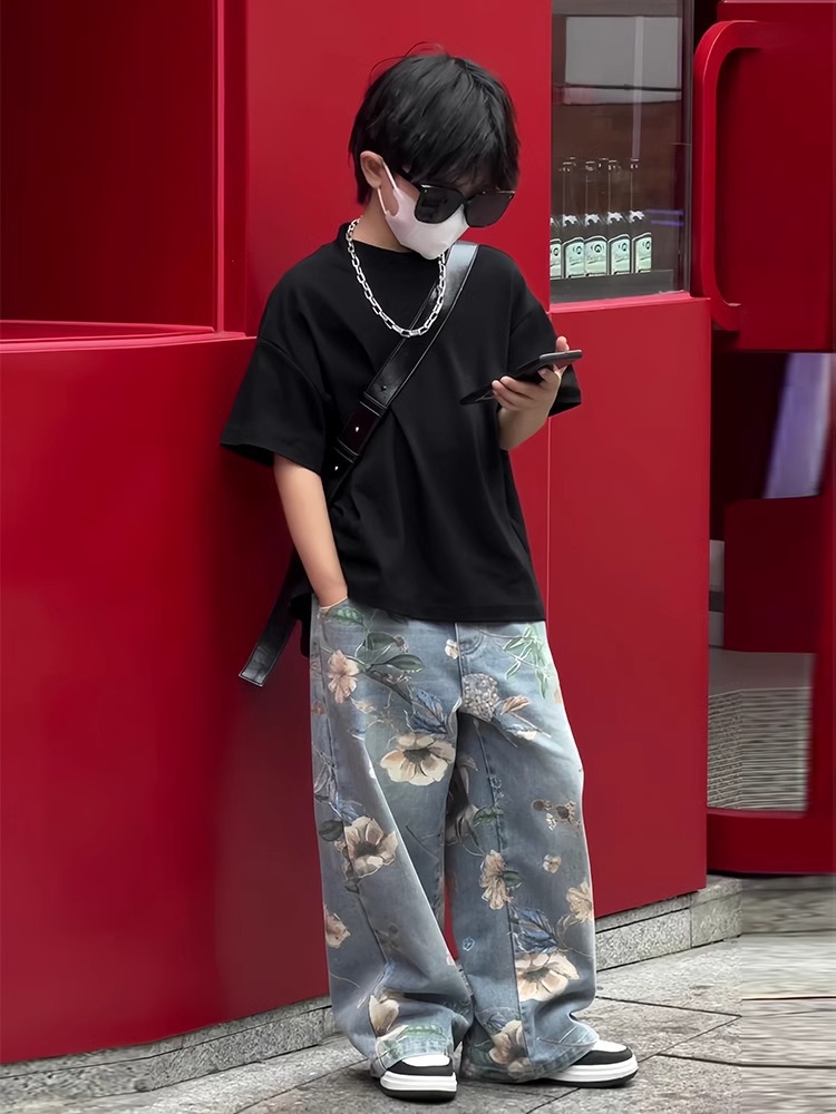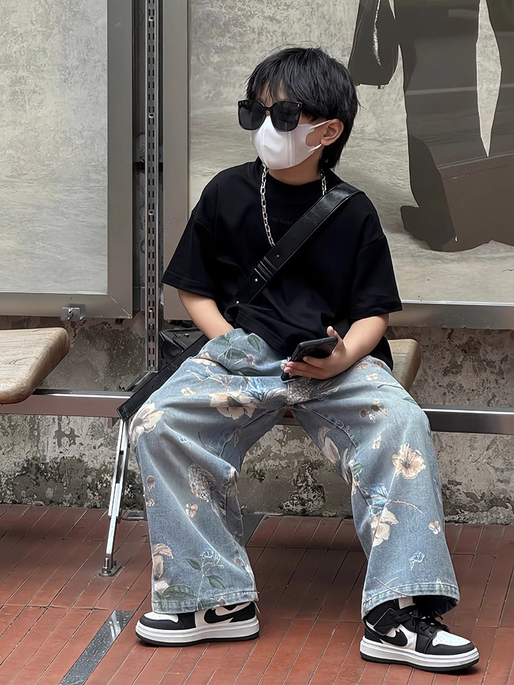 아동복 소년 바지 2025 년 봄과 가을 새로운 어린이 청바지 큰 어린이 가을 넓은 다리 소년 소녀를위한 트렌디 바지스토어 가기