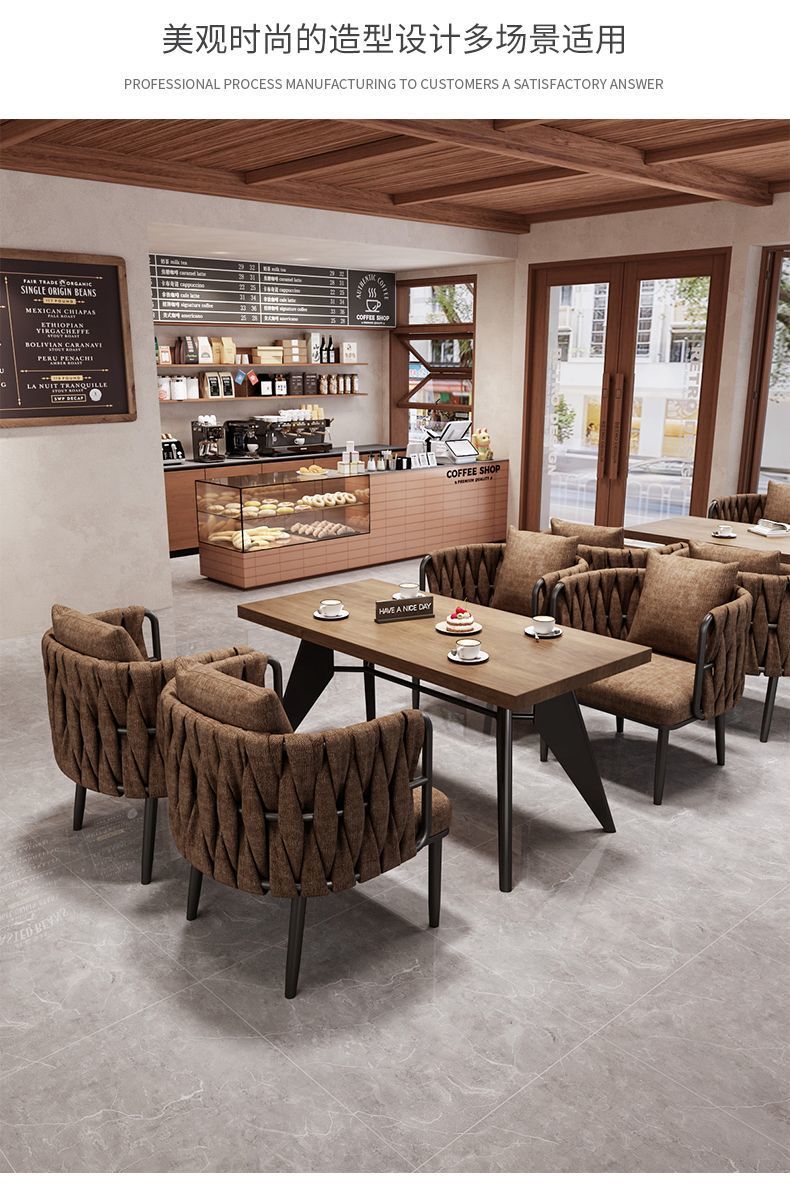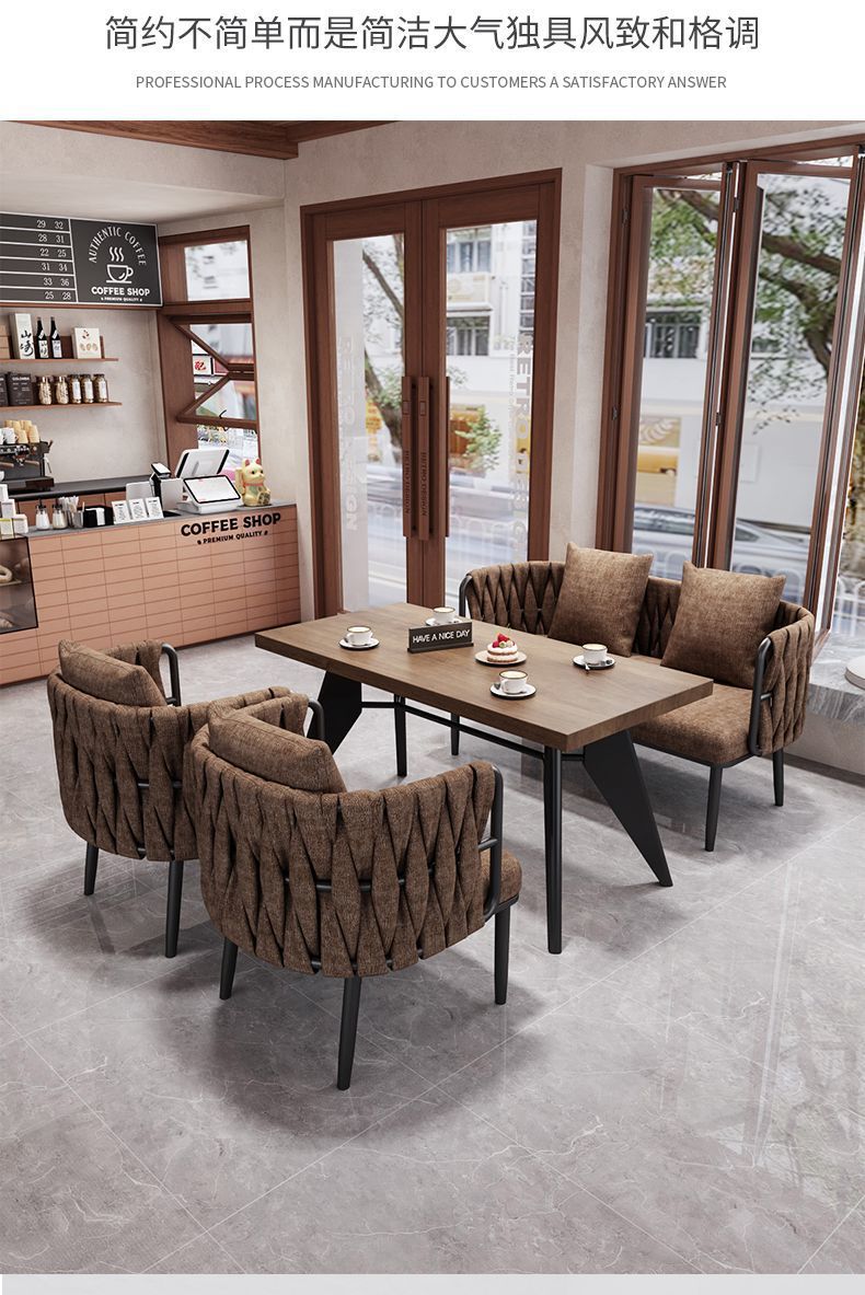 레트로 스타일 커피 숍 소파 의자 1 개의 테이블과 2 개의 의자 찻집 레저 디저트 우유 티 샵 휴식 공간 테이블과 의자 조합스토어 가기