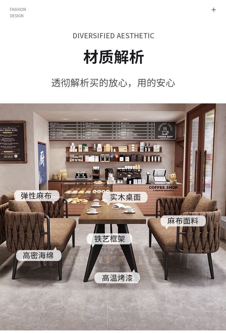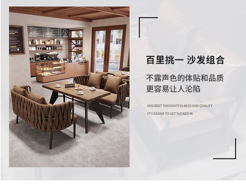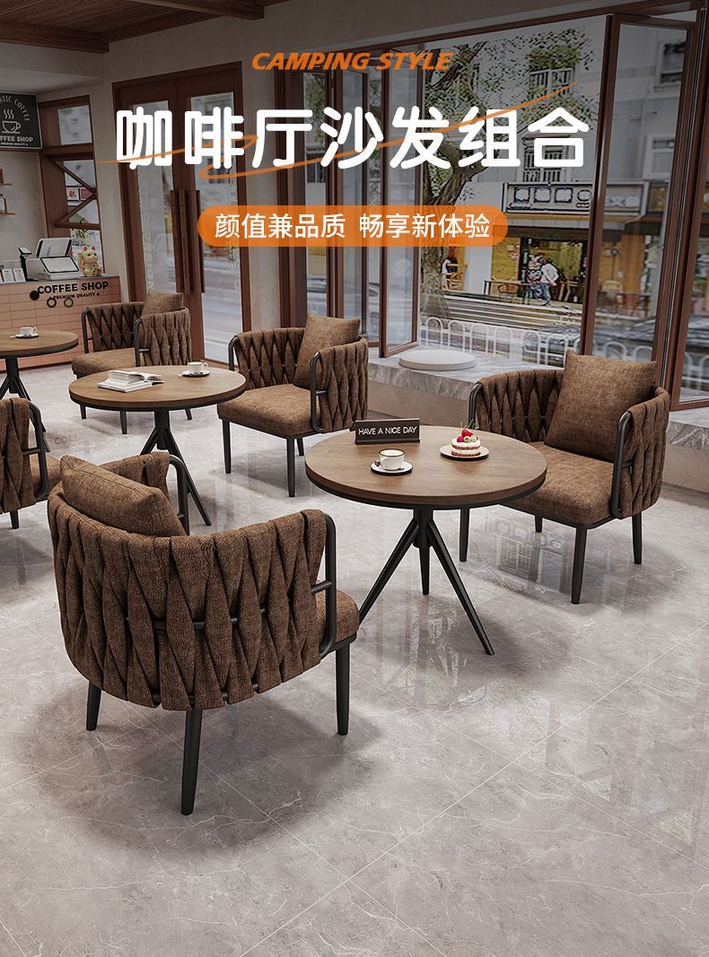 레트로 스타일 커피 숍 소파 의자 1 개의 테이블과 2 개의 의자 찻집 레저 디저트 우유 티 샵 휴식 공간 테이블과 의자 조합