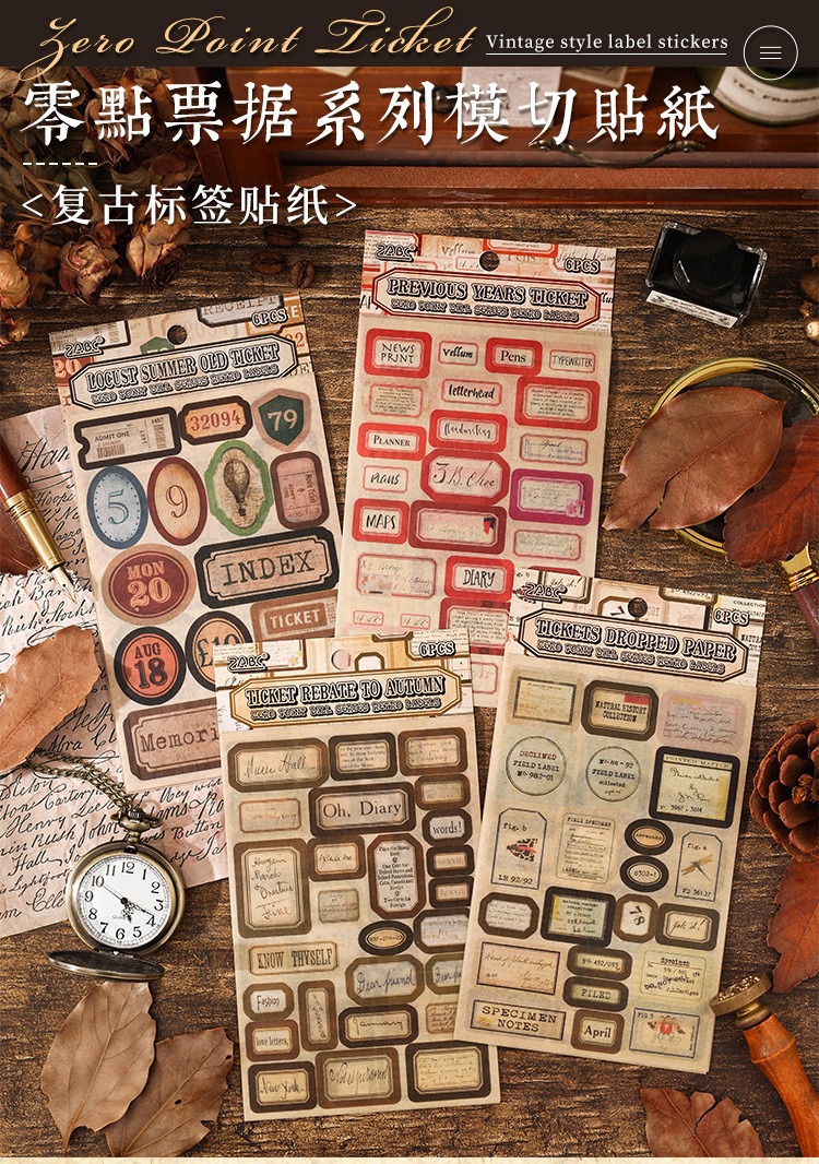 제로 포인트 지폐 시리즈 손 계정 스티커 국경 간 복고풍 예술 영어 손 계정 장식 재료 컷 필름 스티커