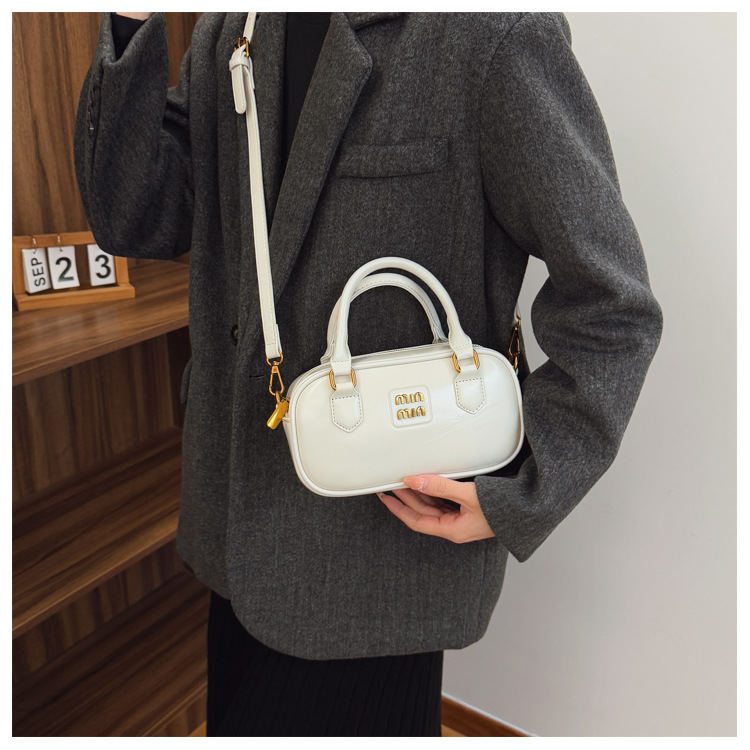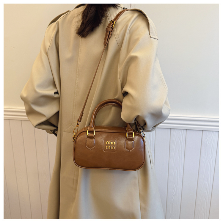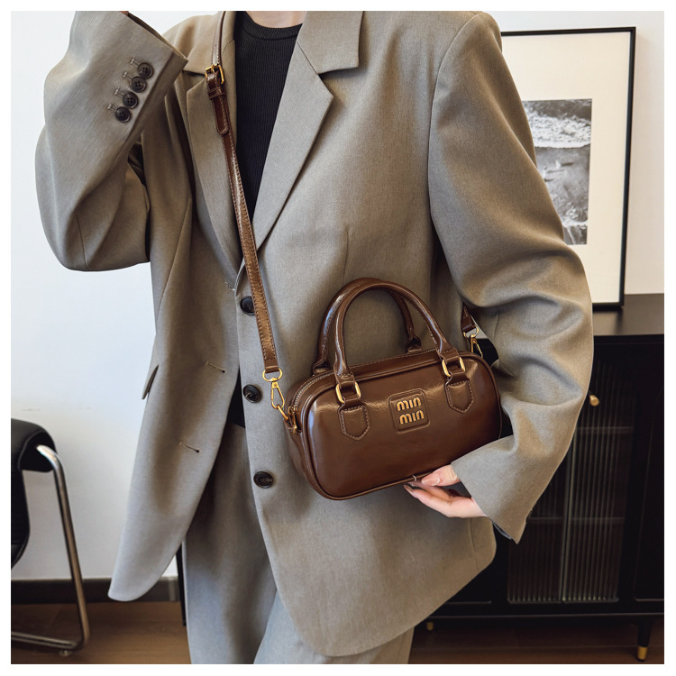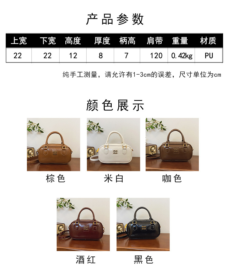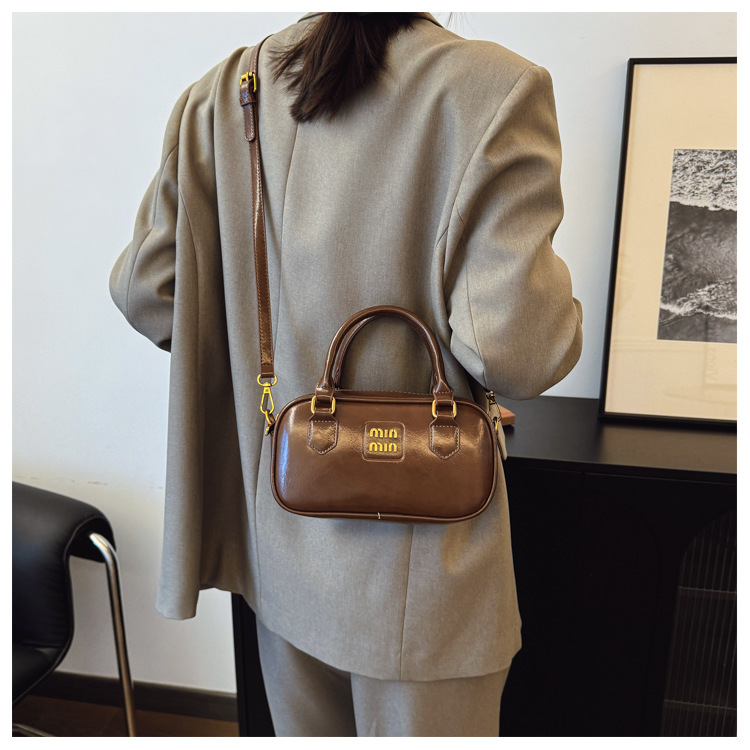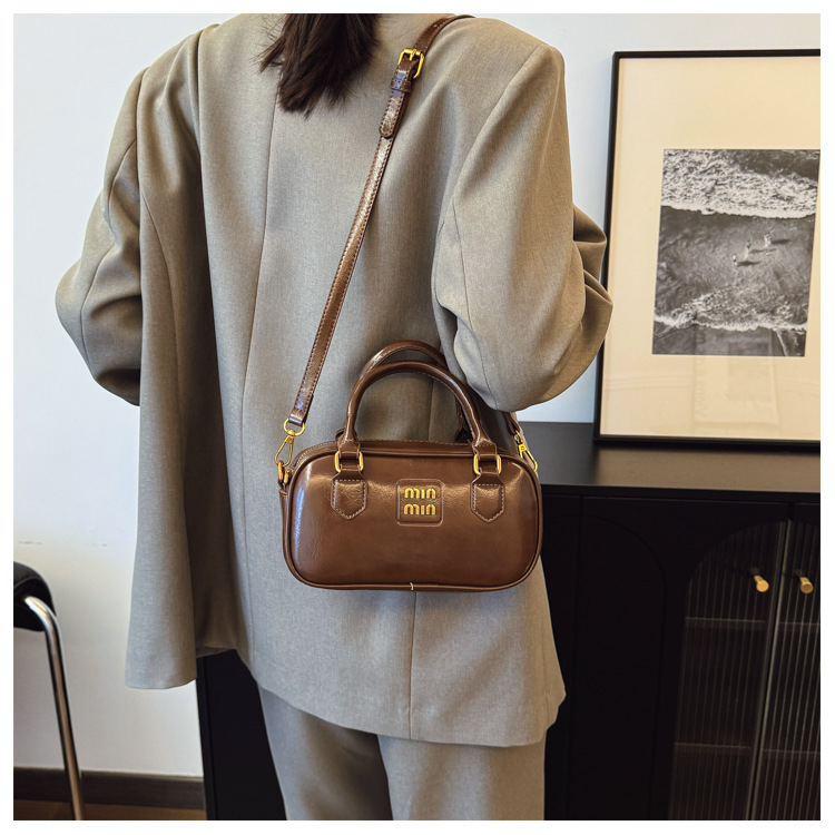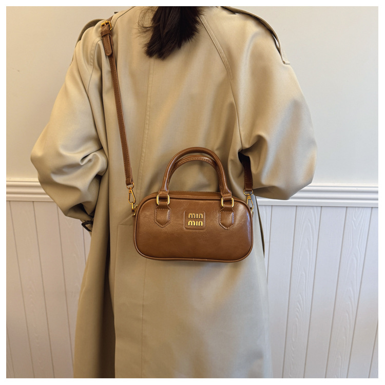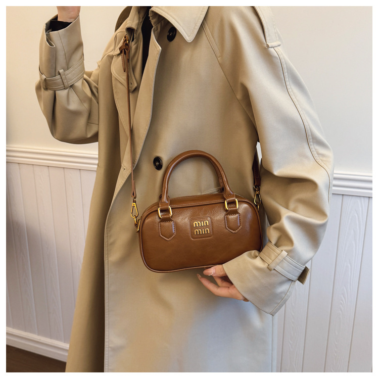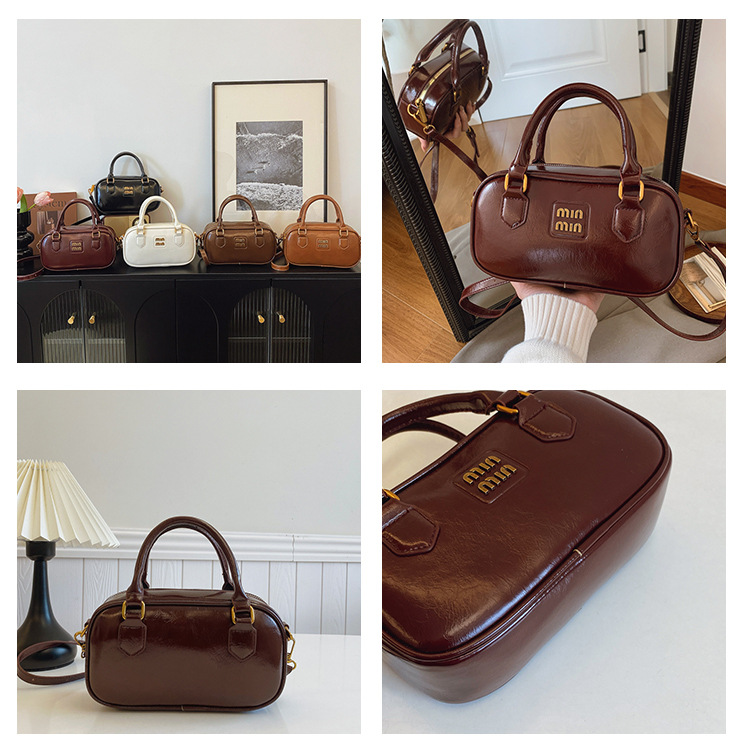2025 새로운 M 볼링 백 여성 패션 보스턴 가방 어깨 크로스 바디 백 빈티지 하이 엔드 여성용 가방