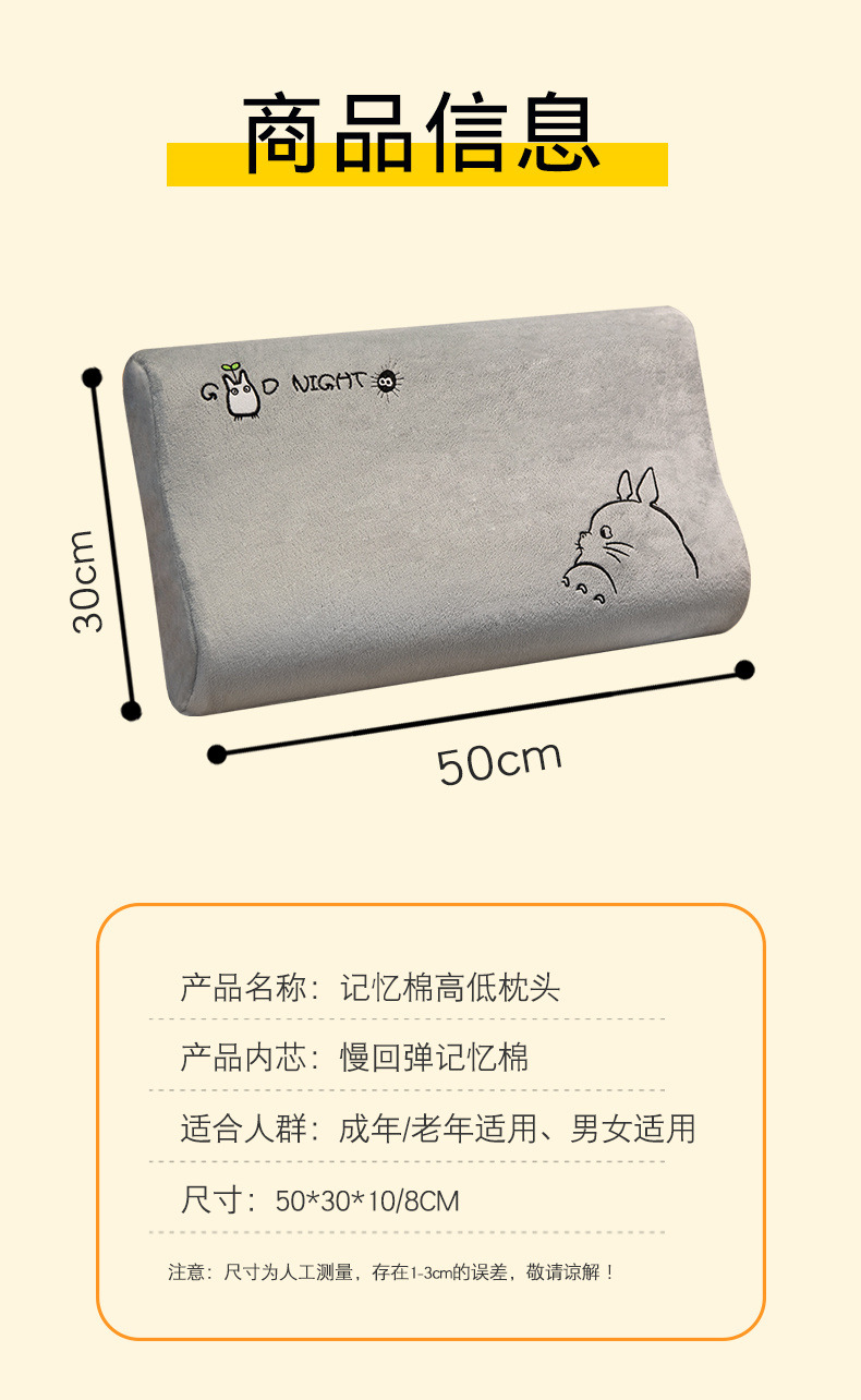 만화 메모리 폼 베개 천천히 리바운드 허리 목 베개 단일 베개 성인 베개 학생 베개 이동식 및 세척 가능한 베개