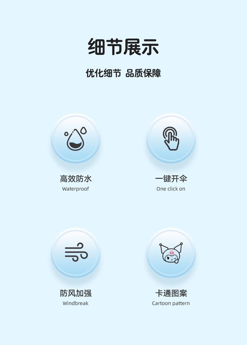 • [중형] 쿠로메 [산리오 무접착 긴 손잡이 우산]