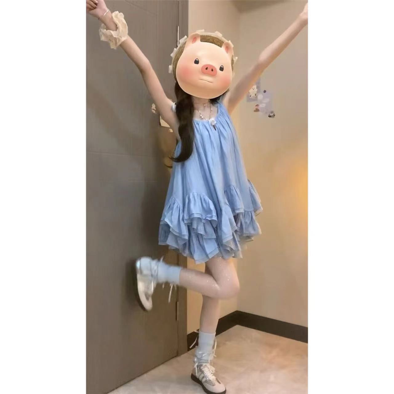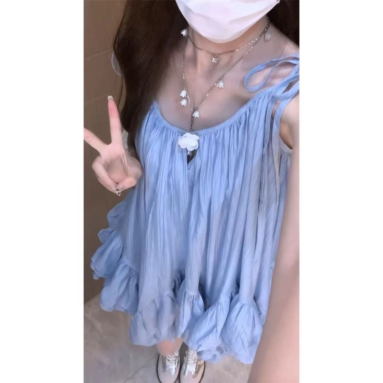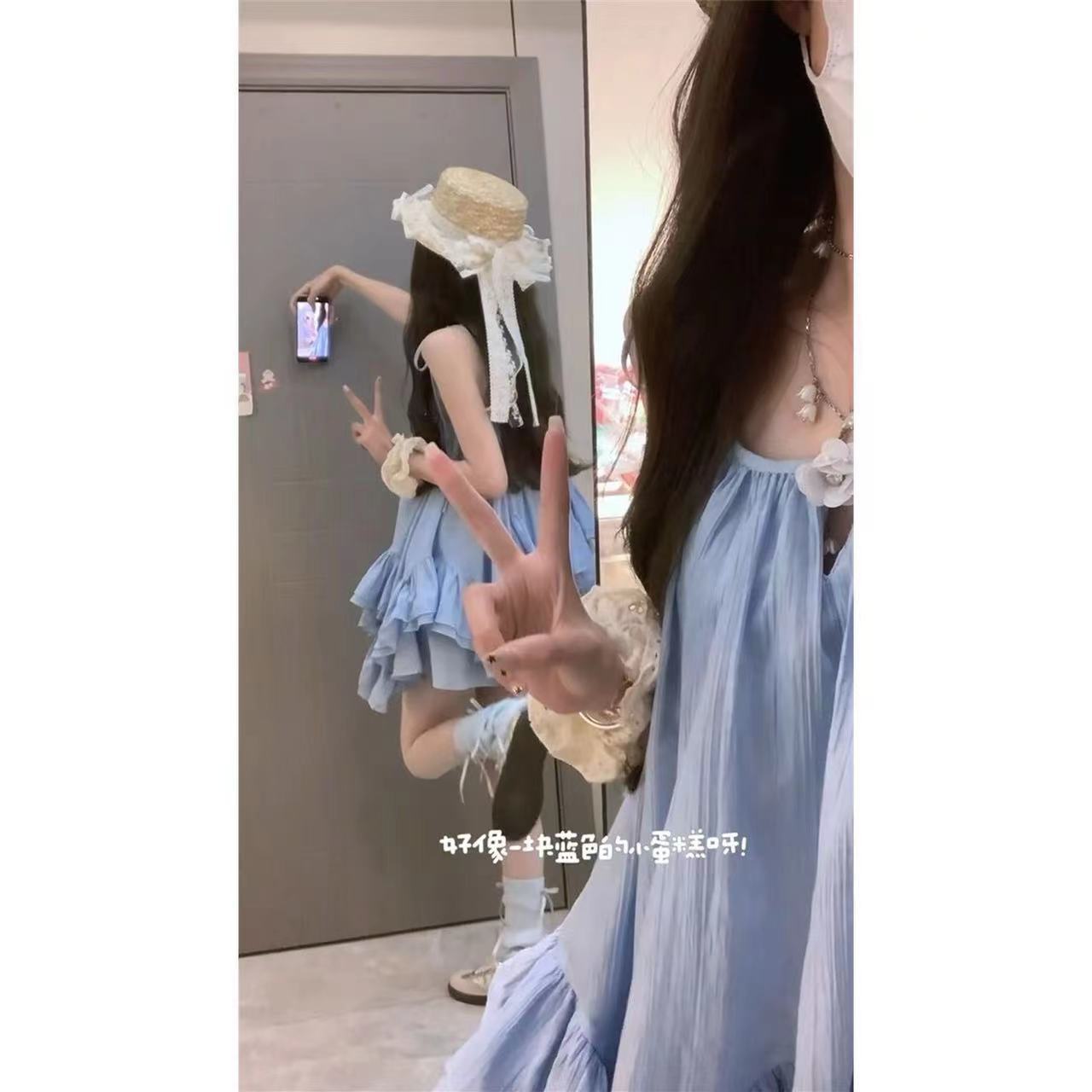 한국형 젠틀 첫사랑 슬링 톱 여성 여름 사진 작은 치마 모리 형 틈새 귀여운 A 자형 원피스